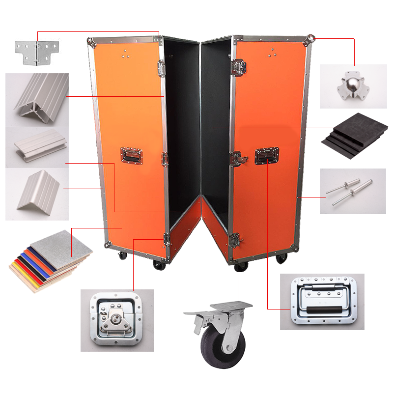 * 8 zinc finished chorme finished or black color Ball corners * 2 heavy duty Butterfly lock * Material: 13mm or 10mm Coated multiplex plywood * High quality Aluminium profiles |