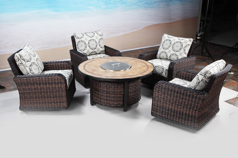 4 Swivel chairs+1 fire pit table