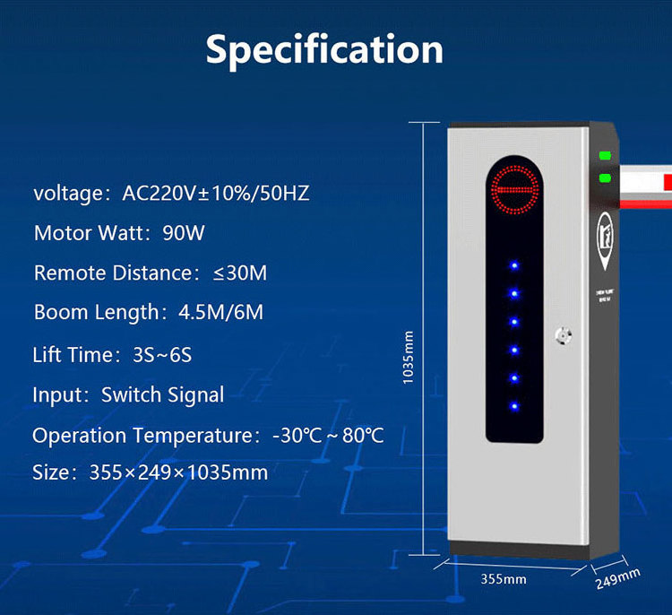 3).Accurate link mechanism: link mechanism can release arm’s shake and motor load, so the barrier gate can move more stable andbarrier gate’s working life can be more longer;