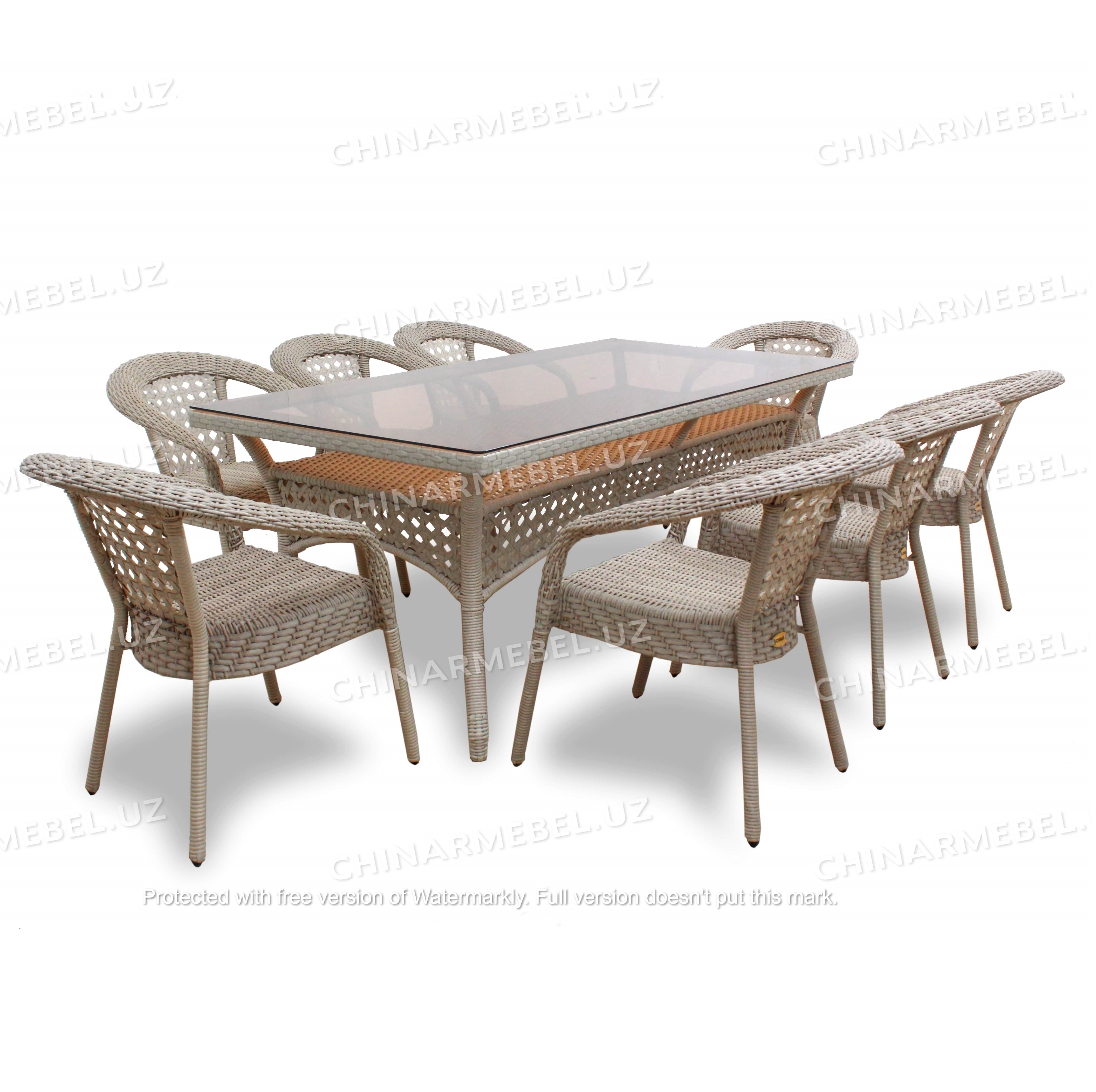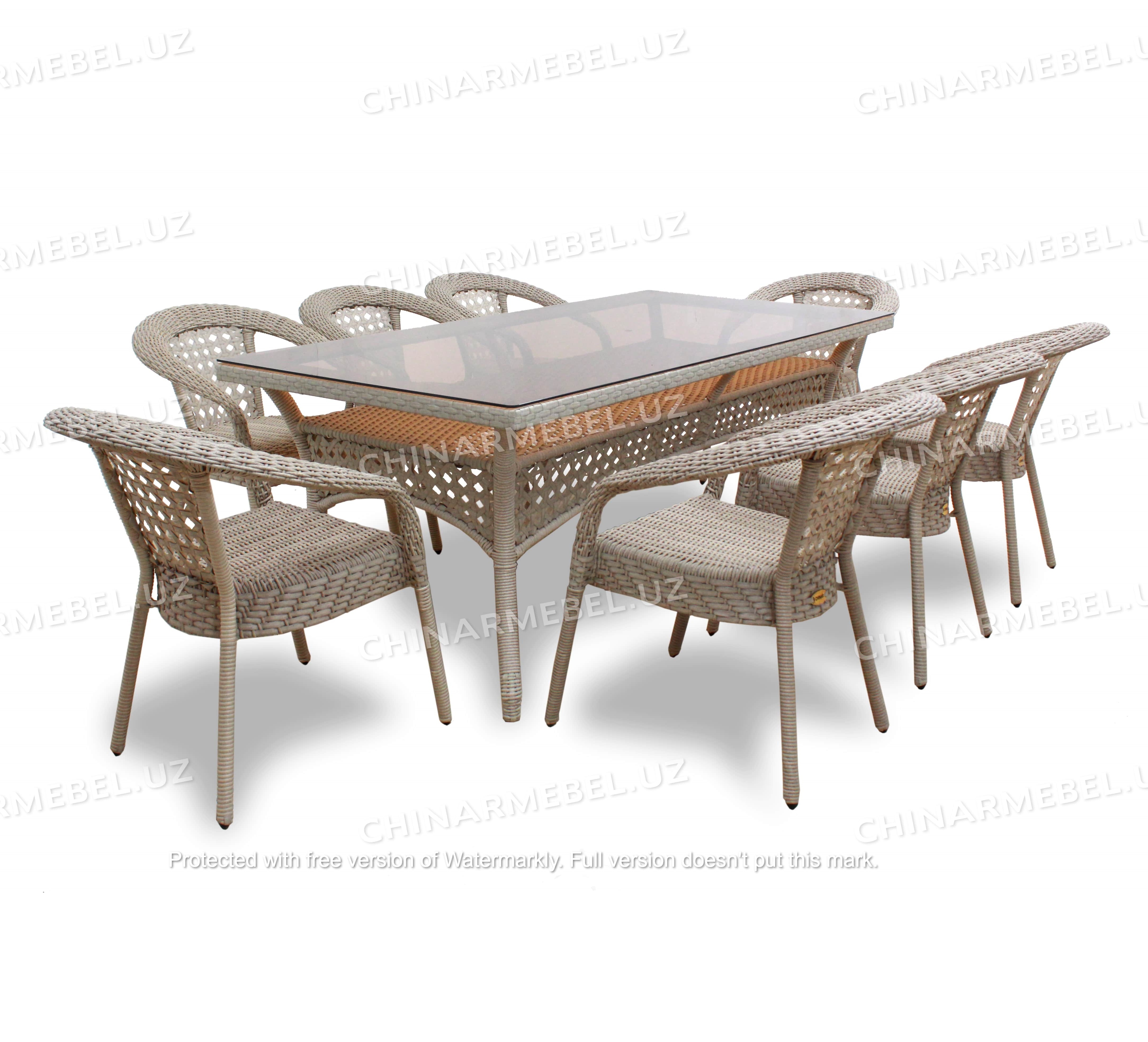 6 x Chairs, 1 x Table with Tempered glass, 6 x Thick Seat Cushions.