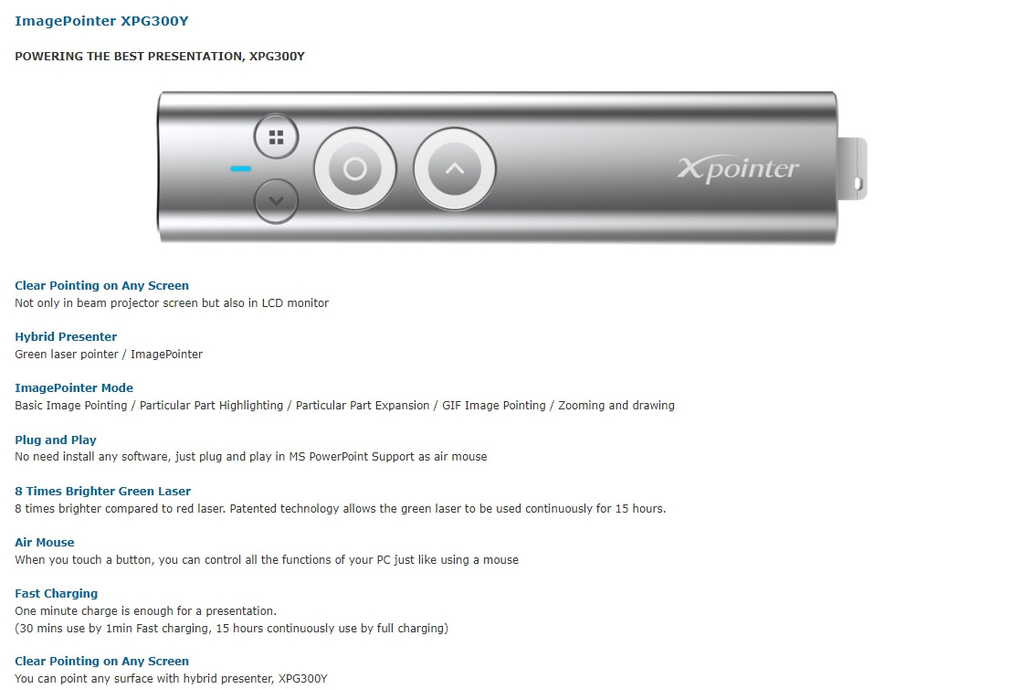 - Supports high-light, magnifying glass mode - High quality GreenPulse Greenlaser - Air mouse function |