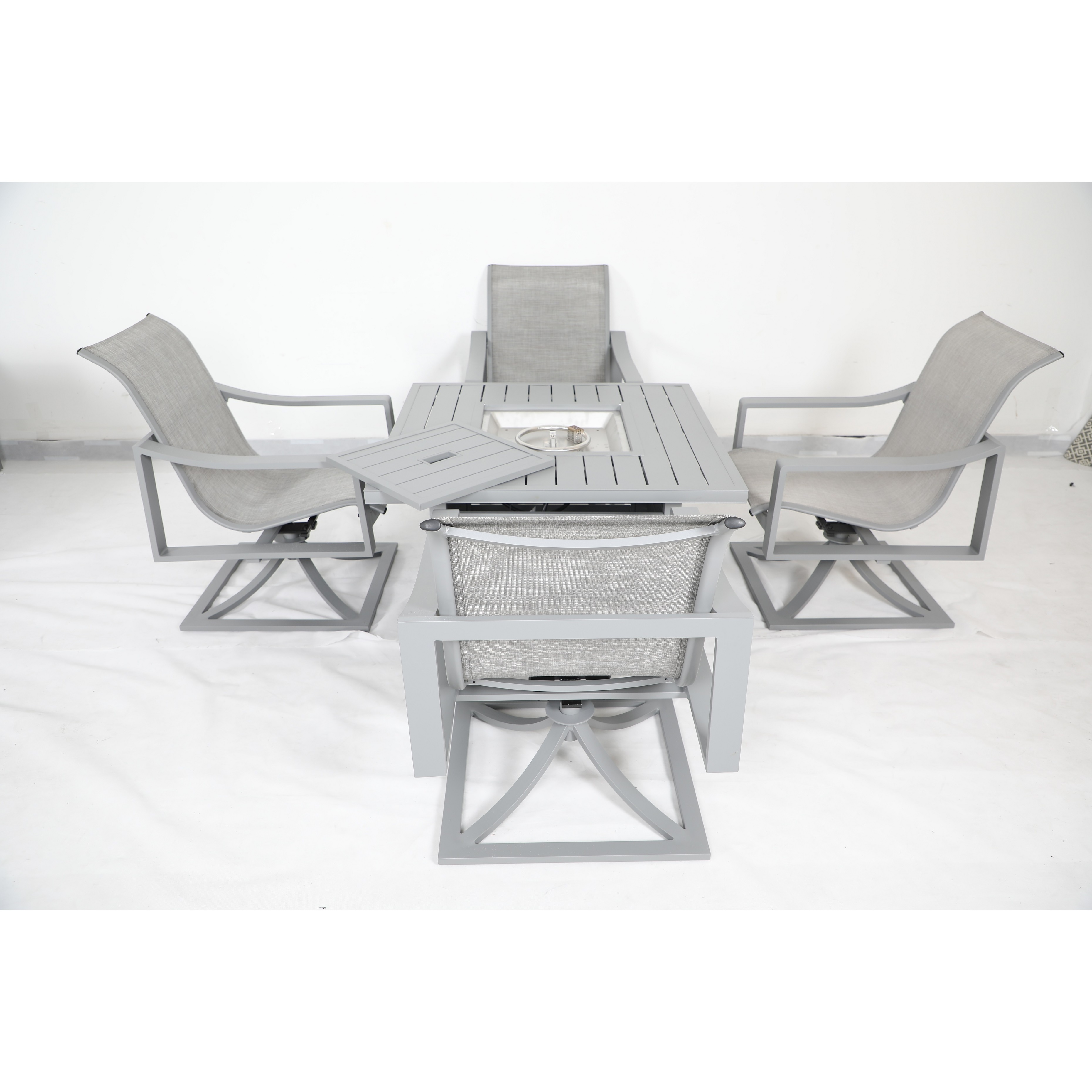 Alumiunium Sling Swivel Chair and Firepit Table Set