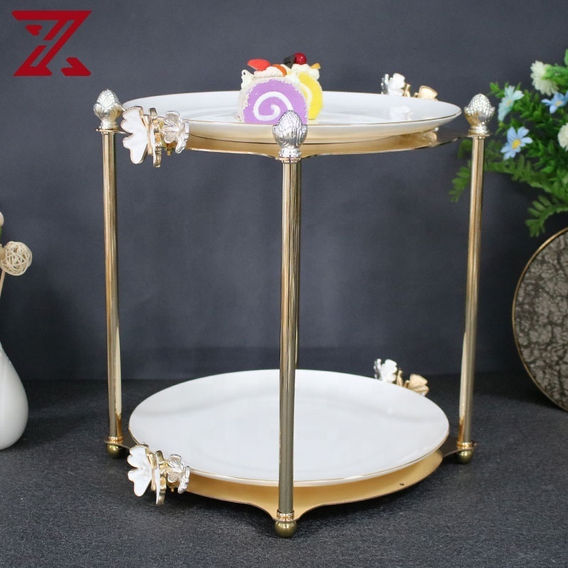 Cheap price sale plated metal stand ceramic cake display shelf living room tea table fruit tray display