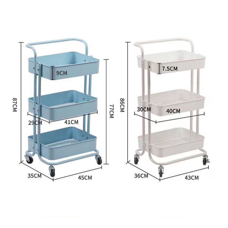 2023 Metal Rolling cart with Practical Handle and ABS Storage Basket
