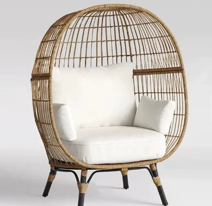 Wicker Egg Chair, Oversized Indoor Outdoor Lounger for Patio, Backyard, Living Room w/ 4 Cushions, Steel Frame