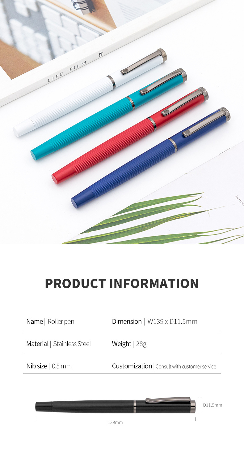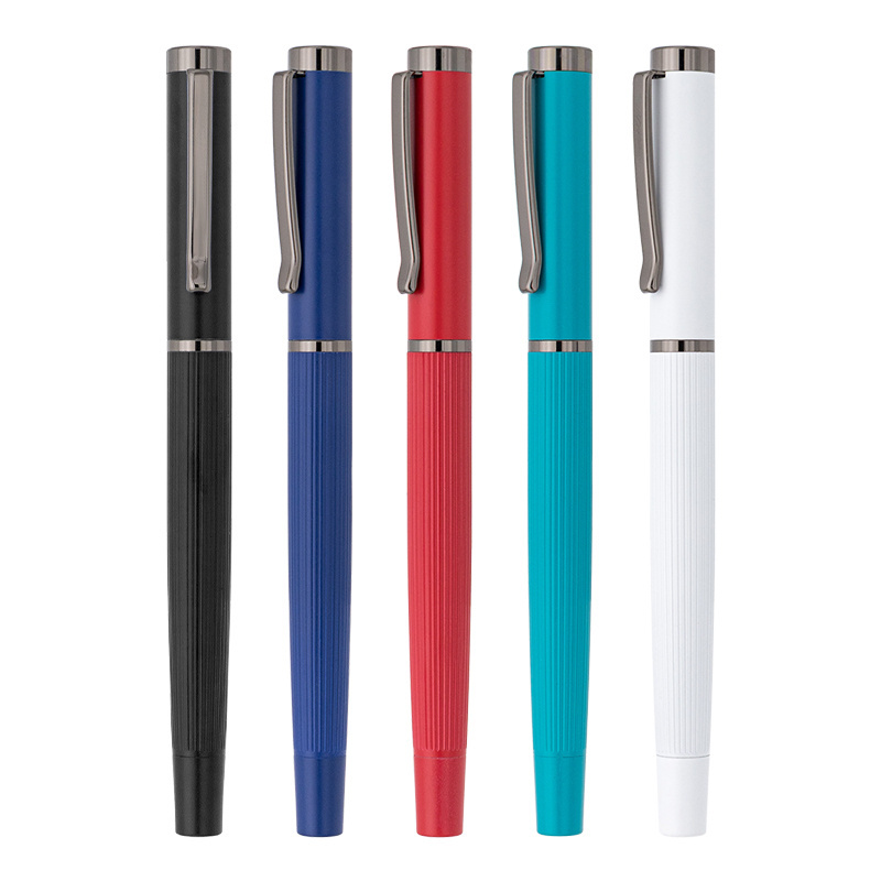 Matte paint metal pen Color business office grooves roller pen Promotional custom color logo gift pen