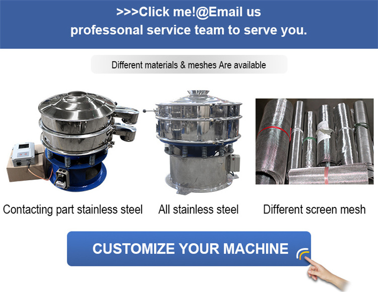 Our circular vibrating screen can be used for processing starch powder, sugar powder, sale, rice flour, milk powder, soybean mile, sauce, fruit juice, condiment, and so on.