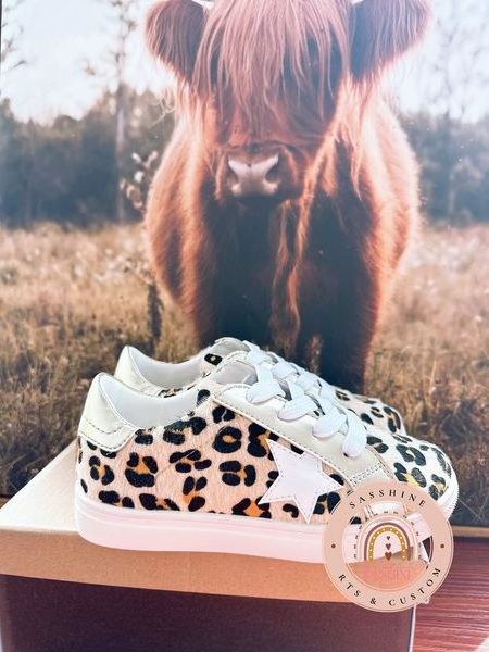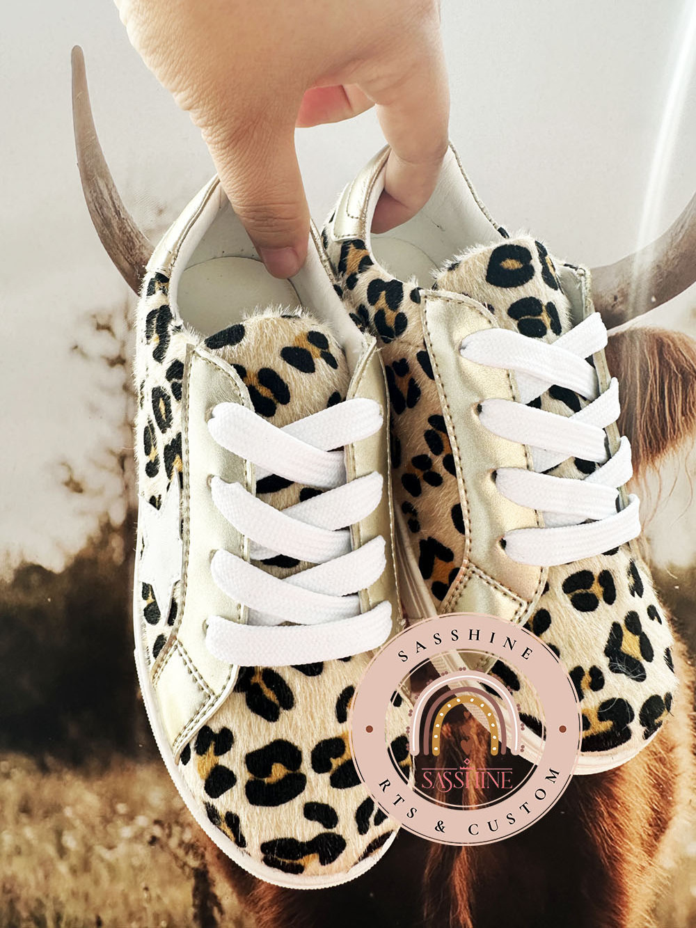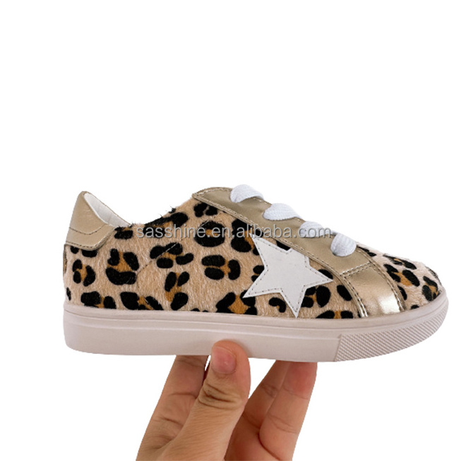 Hot Selling Kid's Hair-on Leopard Star Sneaker Toddler Girls Cheetah Printed Shoes Children's Casual Gold Lace-up Flat Sneakers