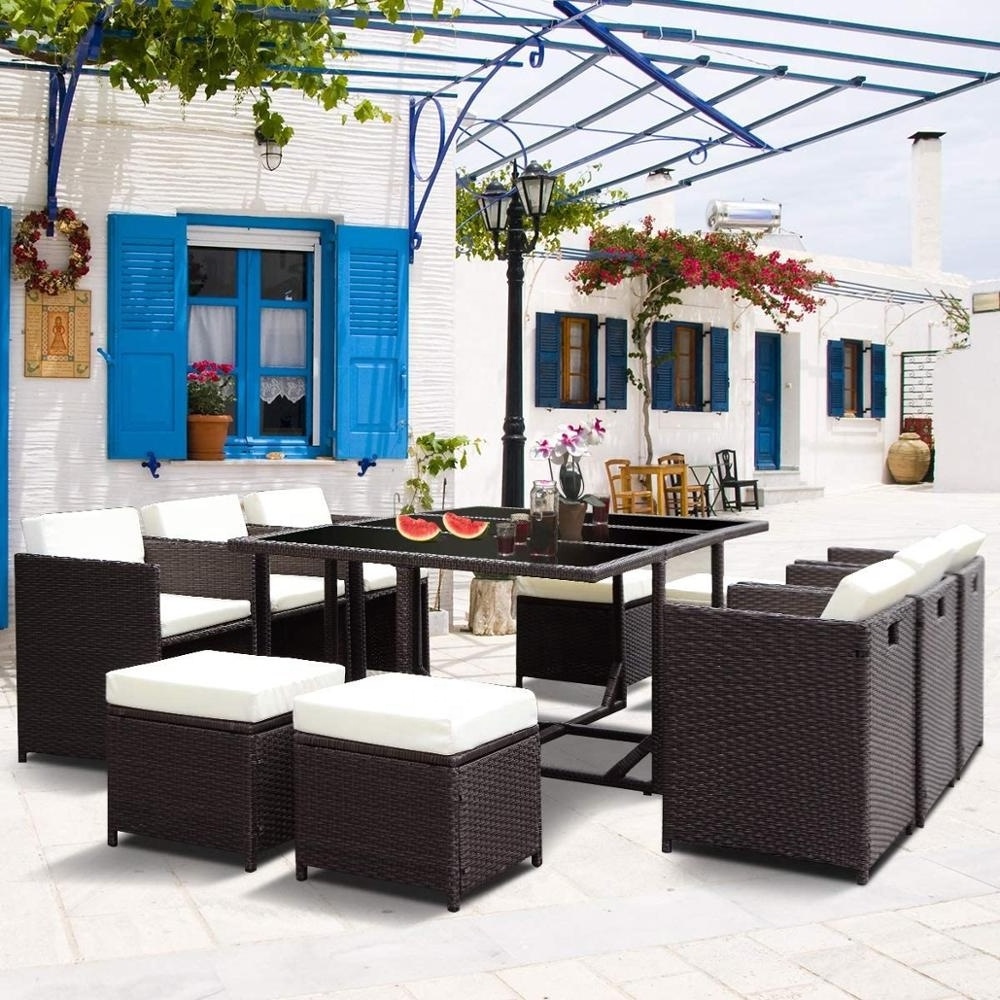 Patio Furniture 11 PCS Outdoor Conversation Set All Weather Wicker Dining Table Chair Set with Ottoman