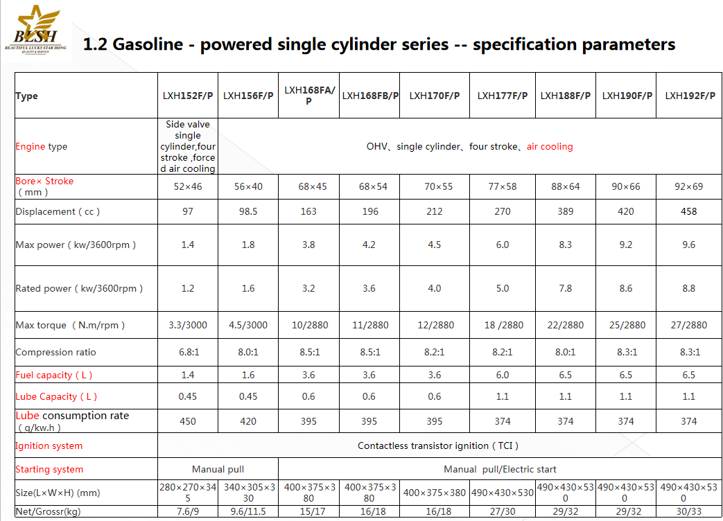 : 1) Displacement covers 80cc ~ 678cc to meet different terminal needs
