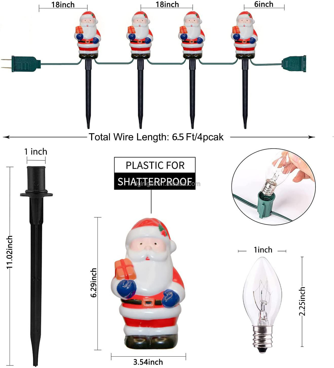Outdoor 4LT Santa Pathway Stakes Lights