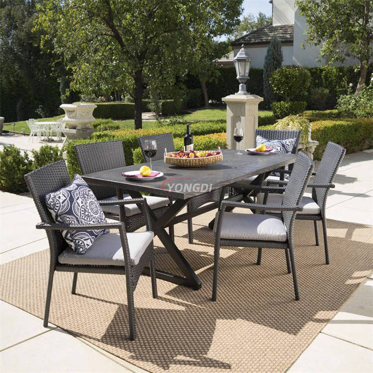 Modern patio deck garden 6 seats outdoor banquet wicker rattan dining table chairs set