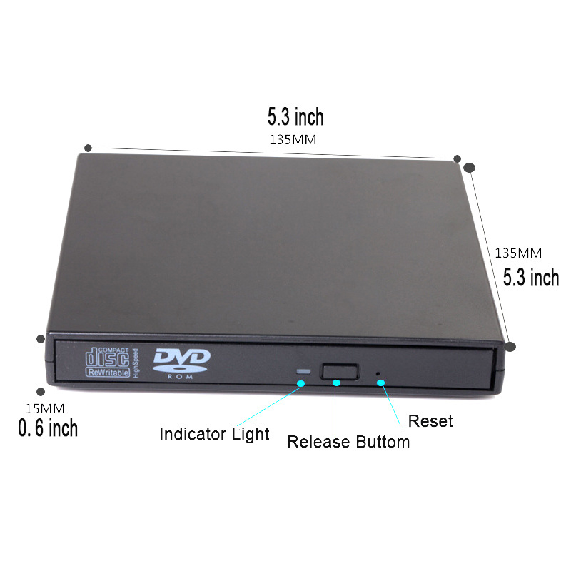USB External DVD CD Reader Player Optical Drive for Windows Laptop Computer