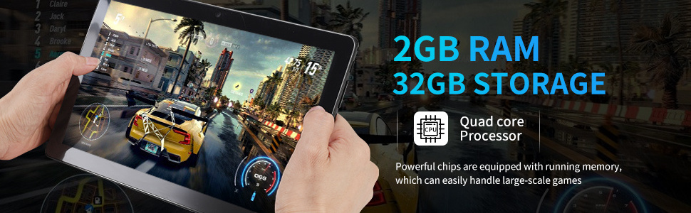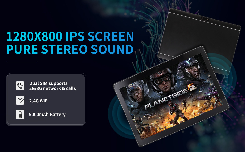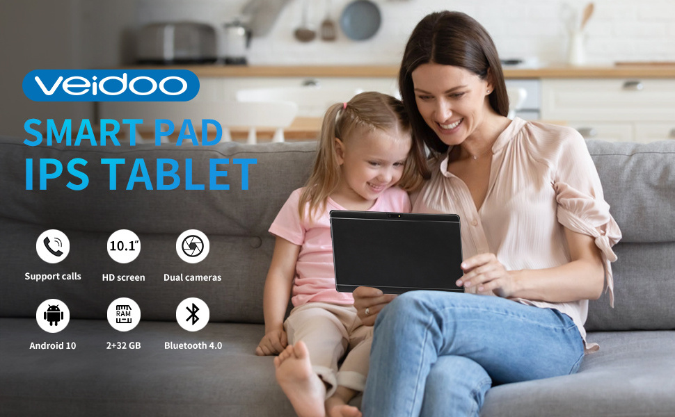 Gorgeous 1280*800IPS high-definition display 10.1 inches, when watching videos or playing games, you will enjoy brilliant colors, clear text, high-definition video and clear sound quality. Veidoo tablet is equipped with a front 2MP rear 5MP dual camera, which can achieve selfies and smooth video calls via WiFi, and share those unforgettable moments with your friends and family.