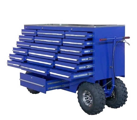Assemble all the parts into a complete pit cart, including accessories such as drawers and handles.