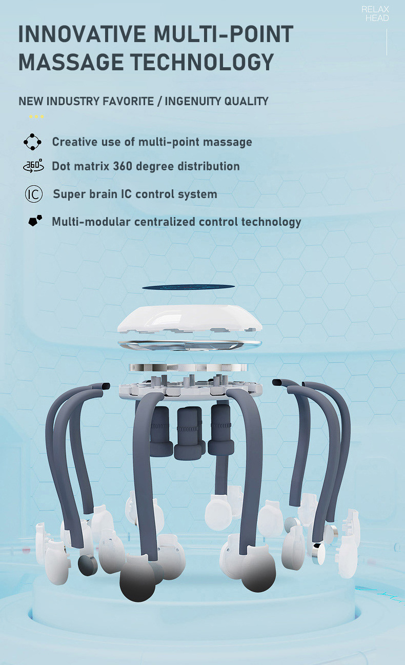 4 Heads Rechargeable Smart Vibration Spider Head Massage Tool Vibrating Octopus Electric Scalp Head Massager