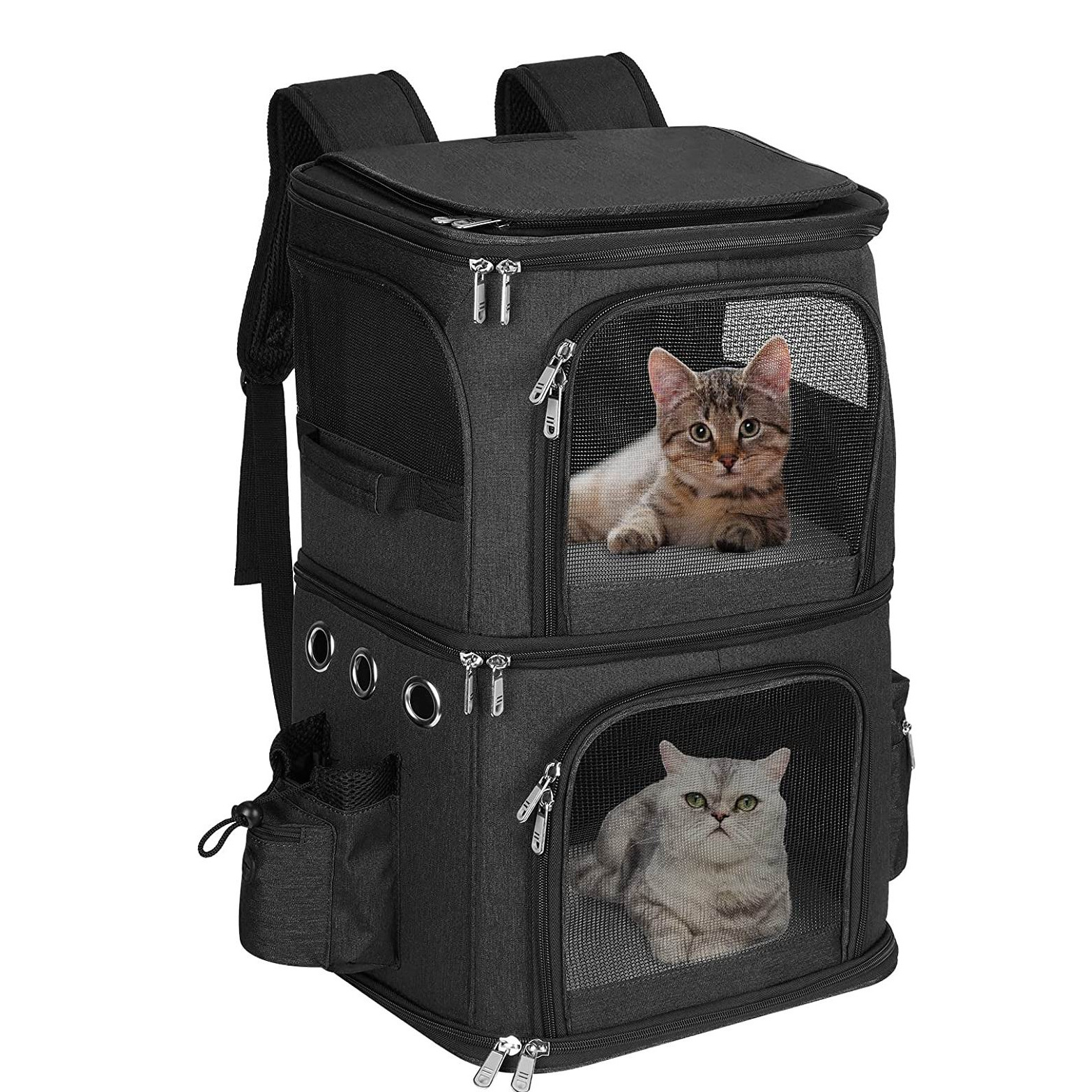 Double-Compartment Pet Carrier Backpack for Small Cats and Dogs,