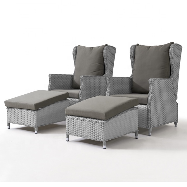 Luxury Garden Patio Wicker Outdoor Furniture Balcony Adjustable Aluminum Rattan Lounge Leisure Chair Set