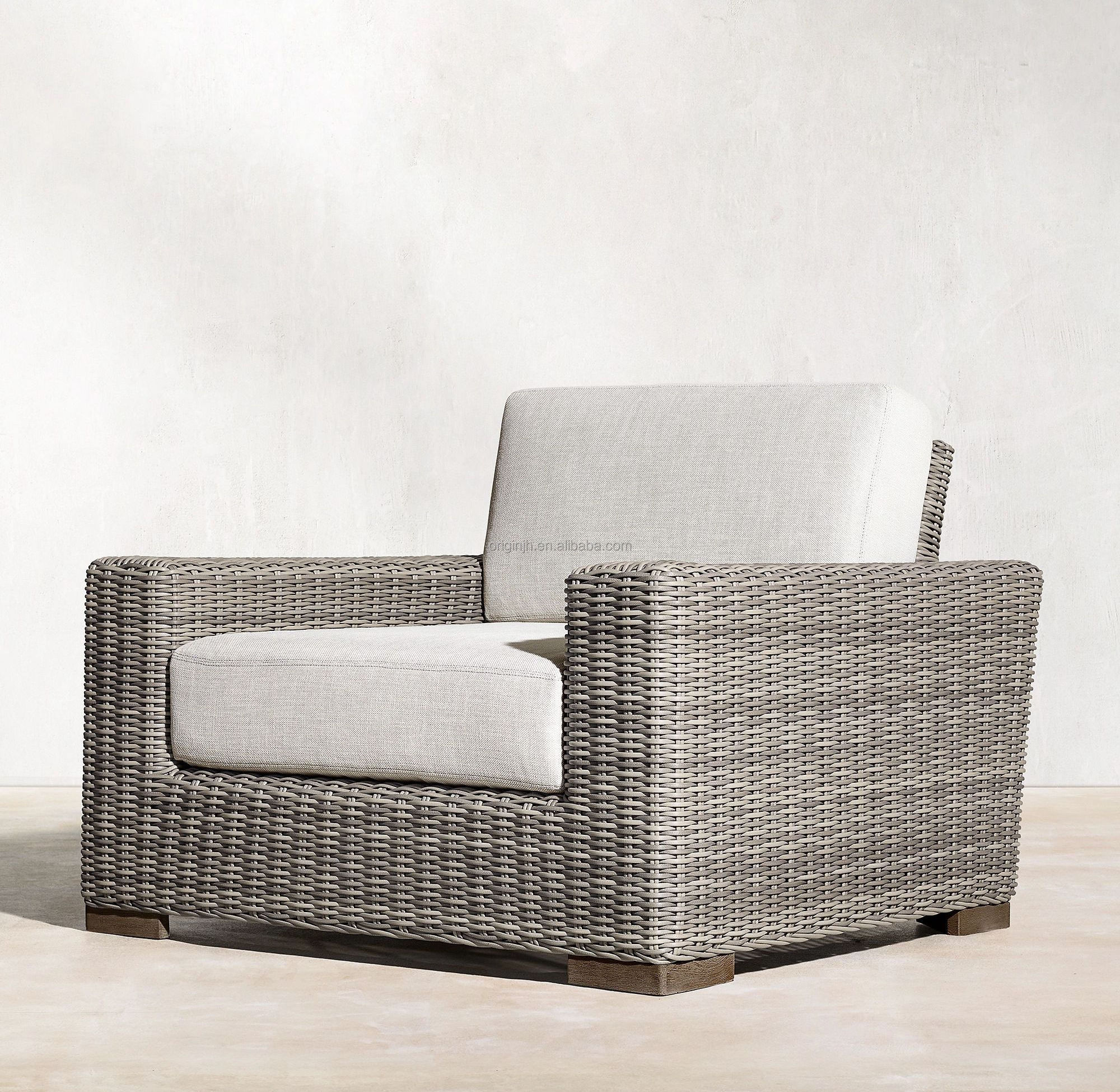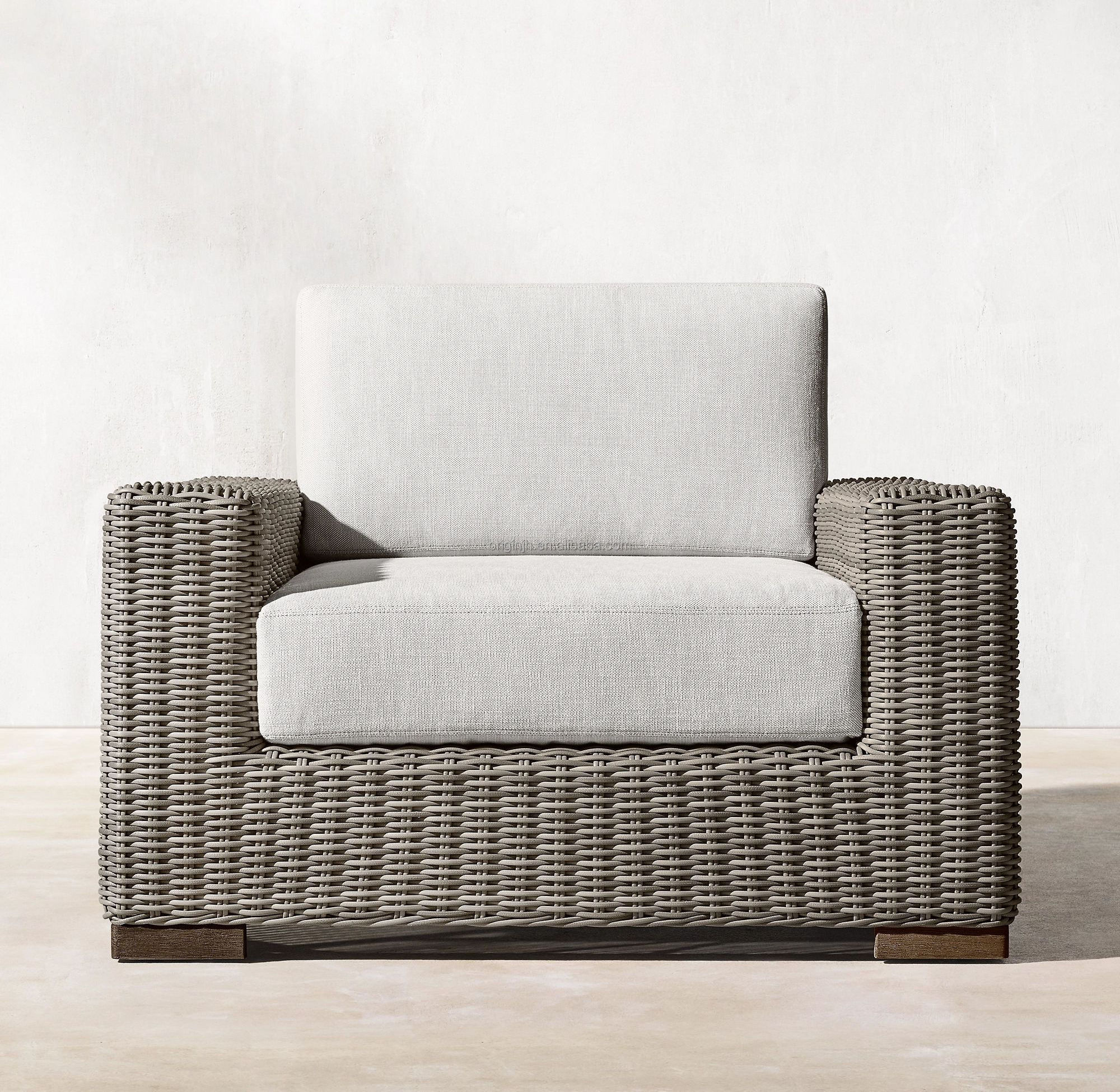 Outdoor modern furniture luxury single seat comfortable cushions rattan sofa club chair
