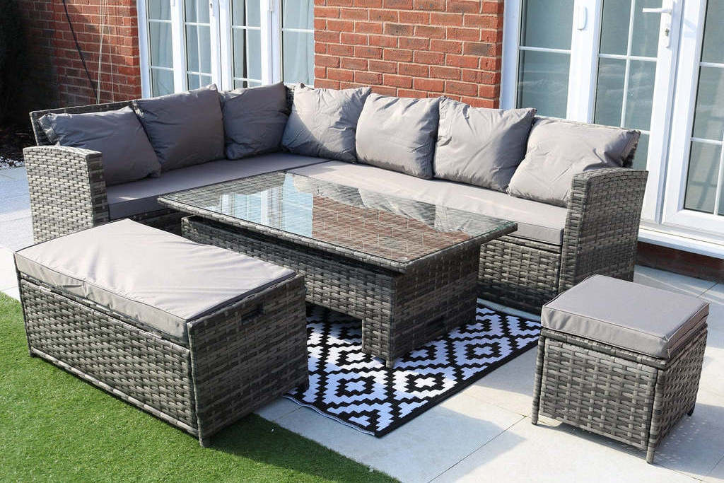 Garden furniture with adjustable dining table