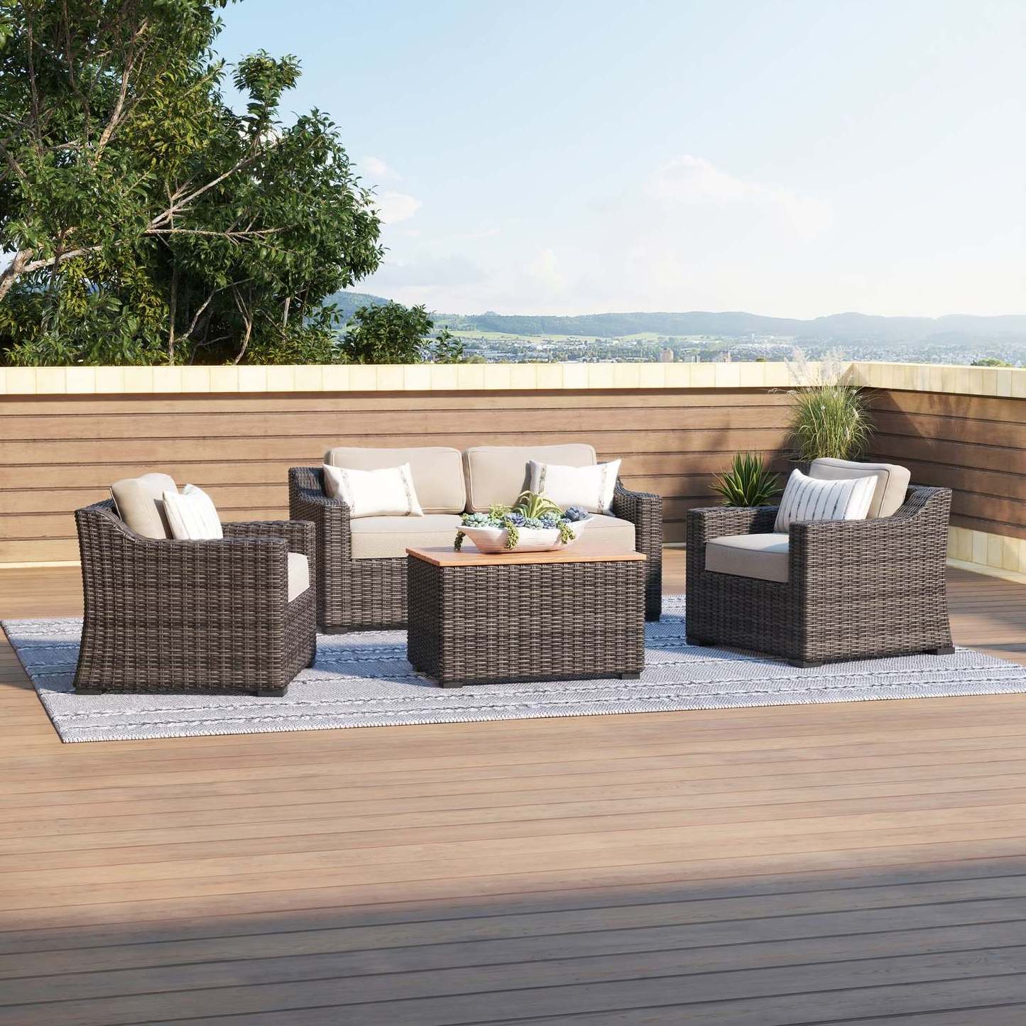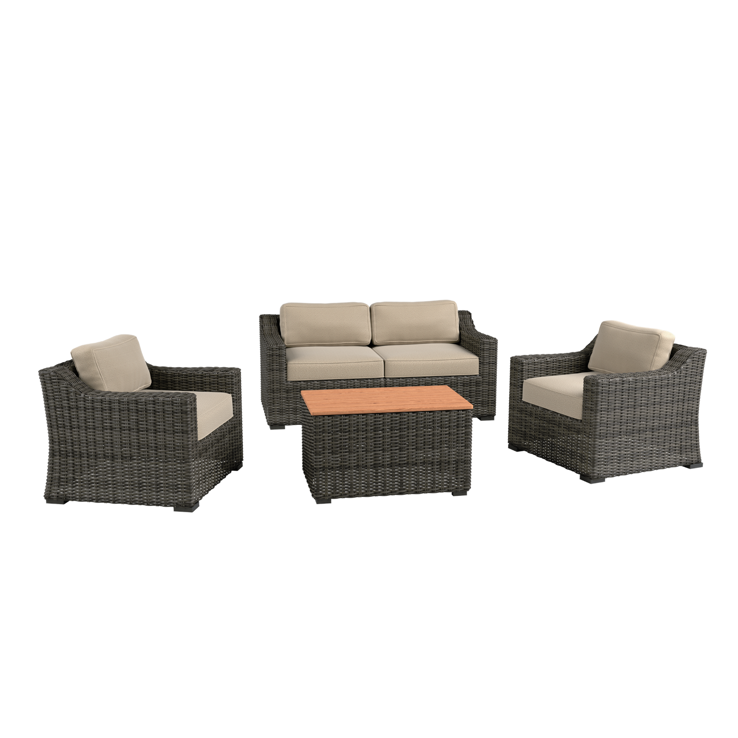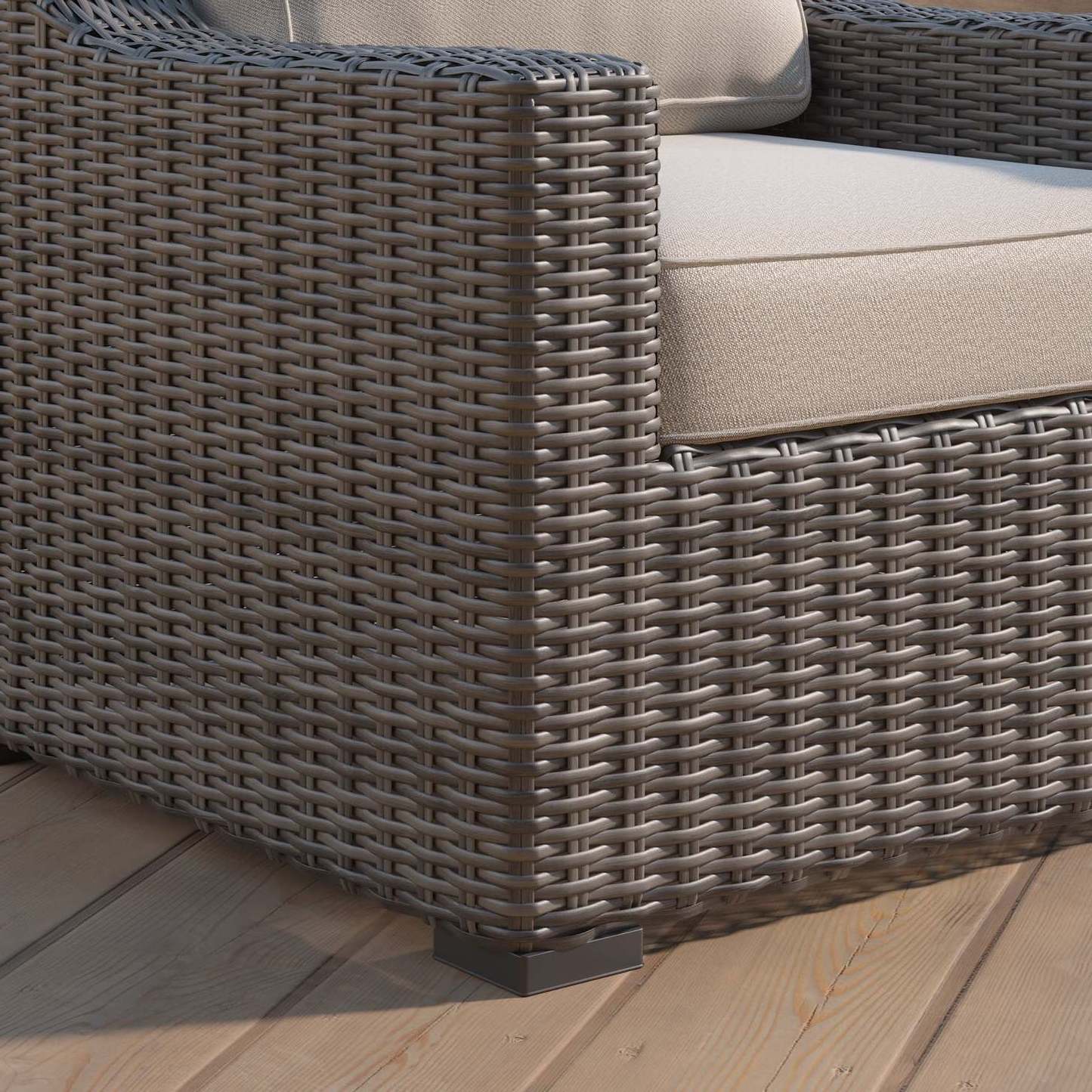 All-weather PE rattan, UV protection, colorfast, water proof, wipe to clean, durable, environment friendlyc
