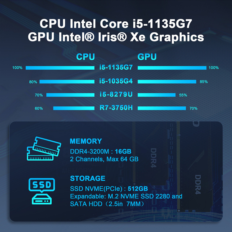 | CPU | 11th Generation Intel® Core™ i5 Processors 1135G7 (8M Cache, up to 4.20 GHz) | |