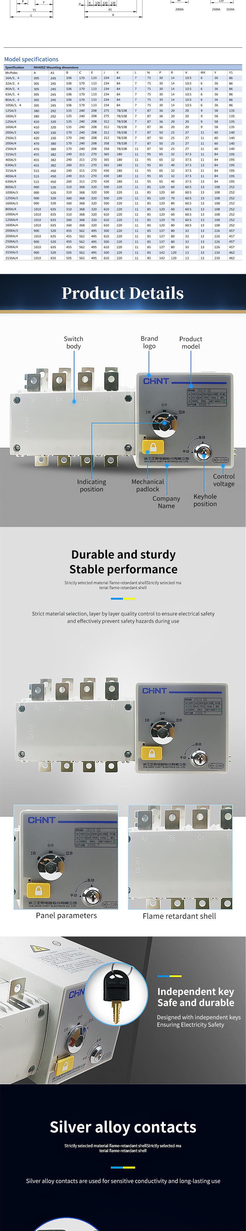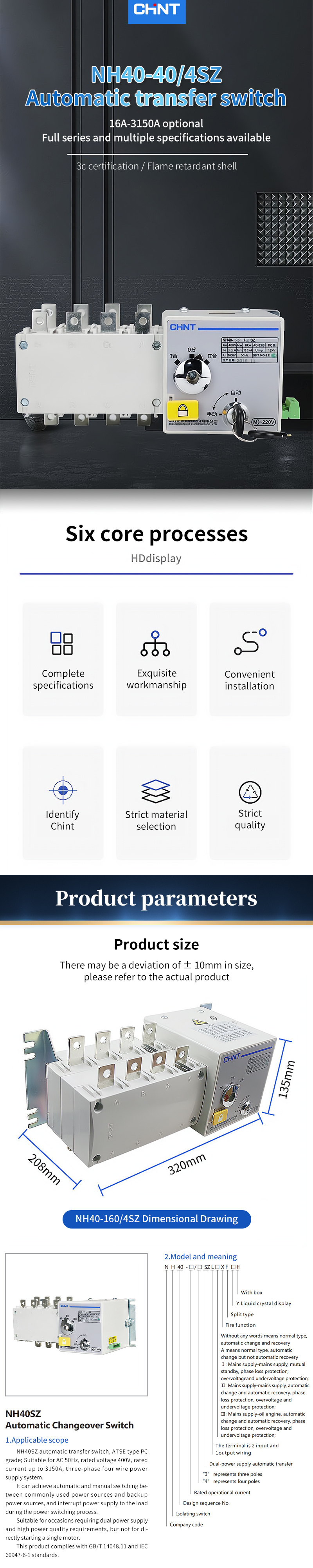 Chint Dual Power Supply Automatic Switch NH40/SZ 100A Chint ATS Isolation Switch Hot sales Generator Automatic Transfer Switch
