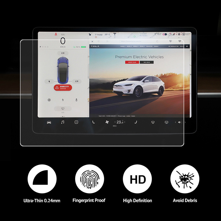 1.The Tesla Model 3 screen protector is made of high-strength and impact-resistant frosted tempered glass with HD