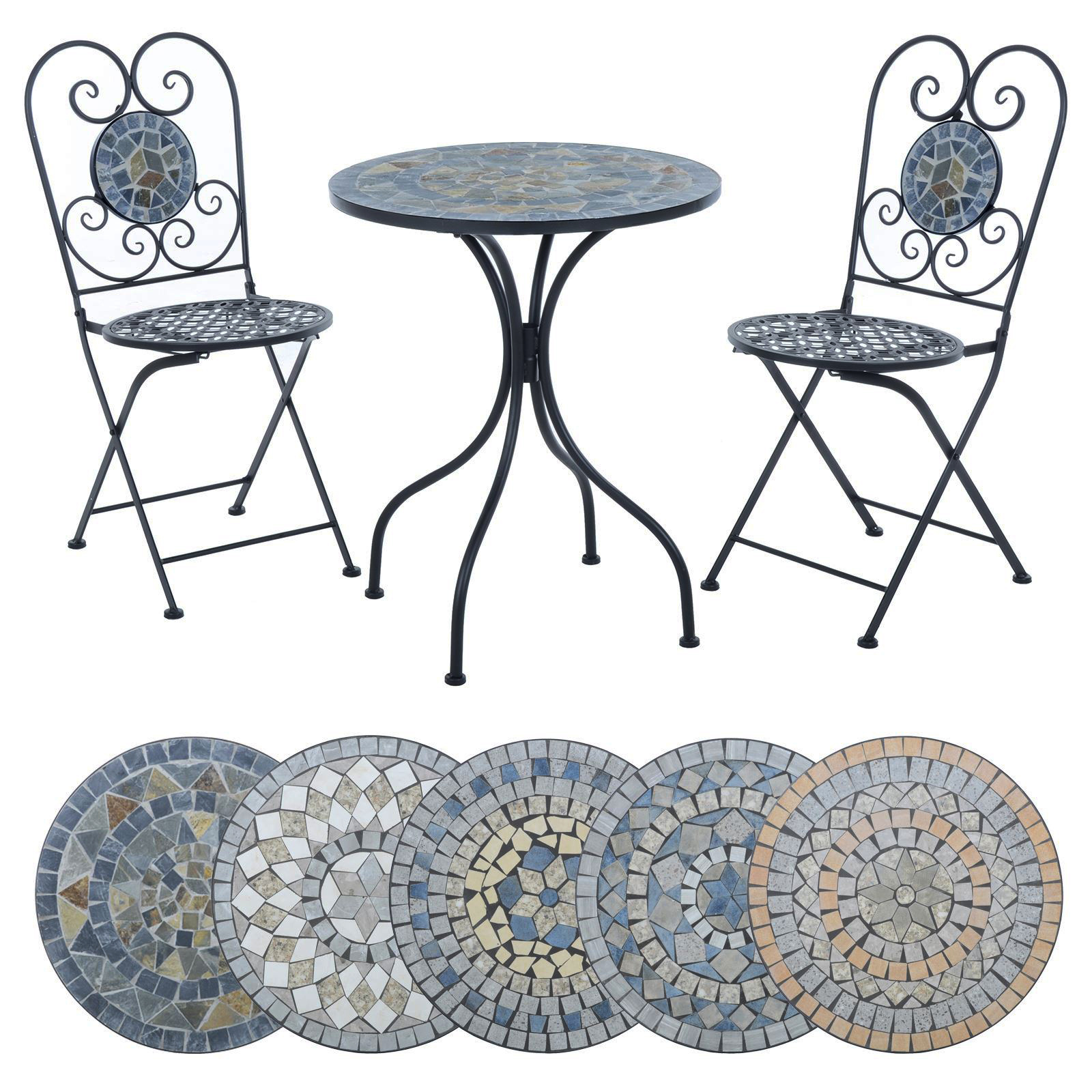 Metal Iron Black Mosaic Bistro Set Patio Garden Outdoor Furniture