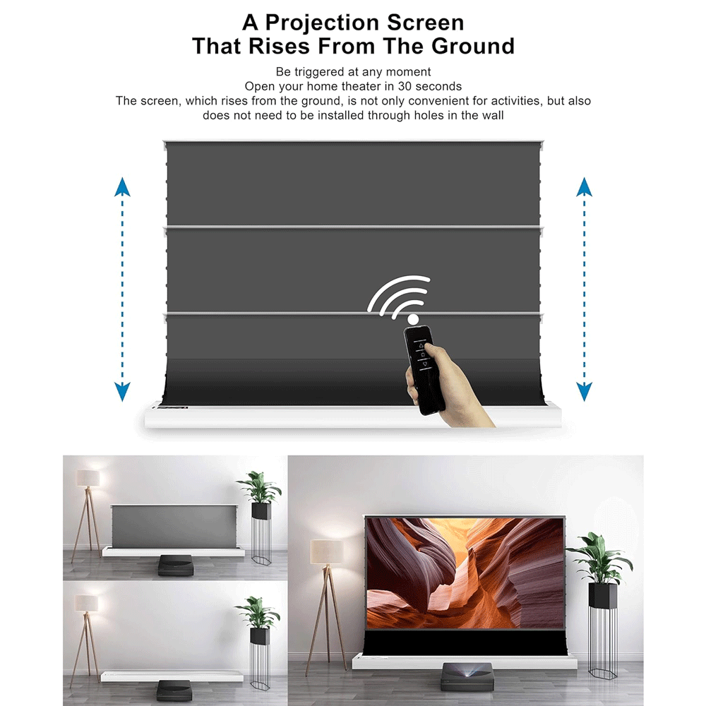 Electric Floor Rising Cinema White Projector Screen (Newly Upgraded)