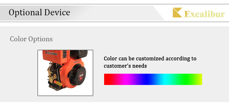 A: Yes. Excalibur 186F Air Cooled Motori Diesel 10CV Cina can be customized according to customers design. Color and crankshaft can also be customized according to the customer's drawings.