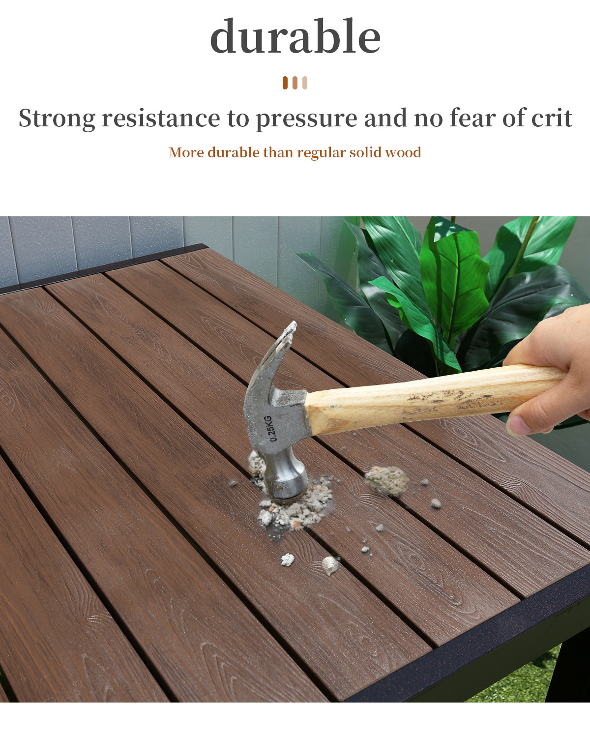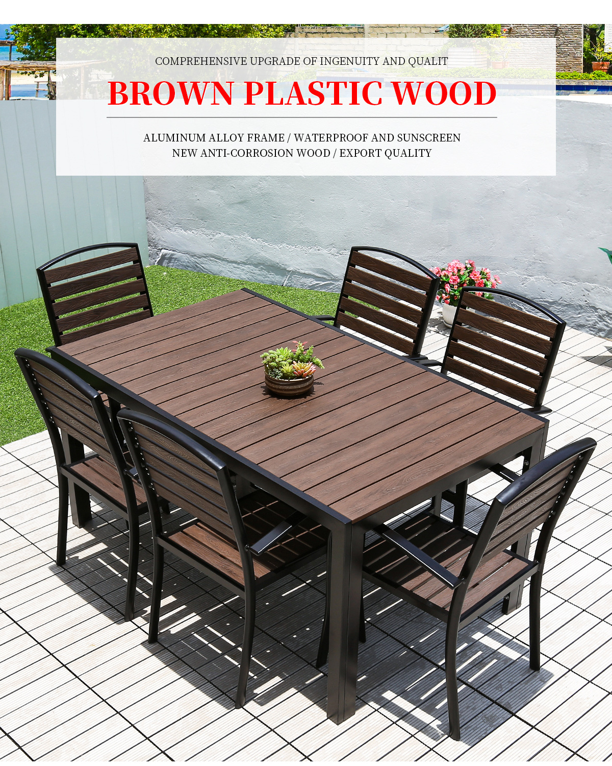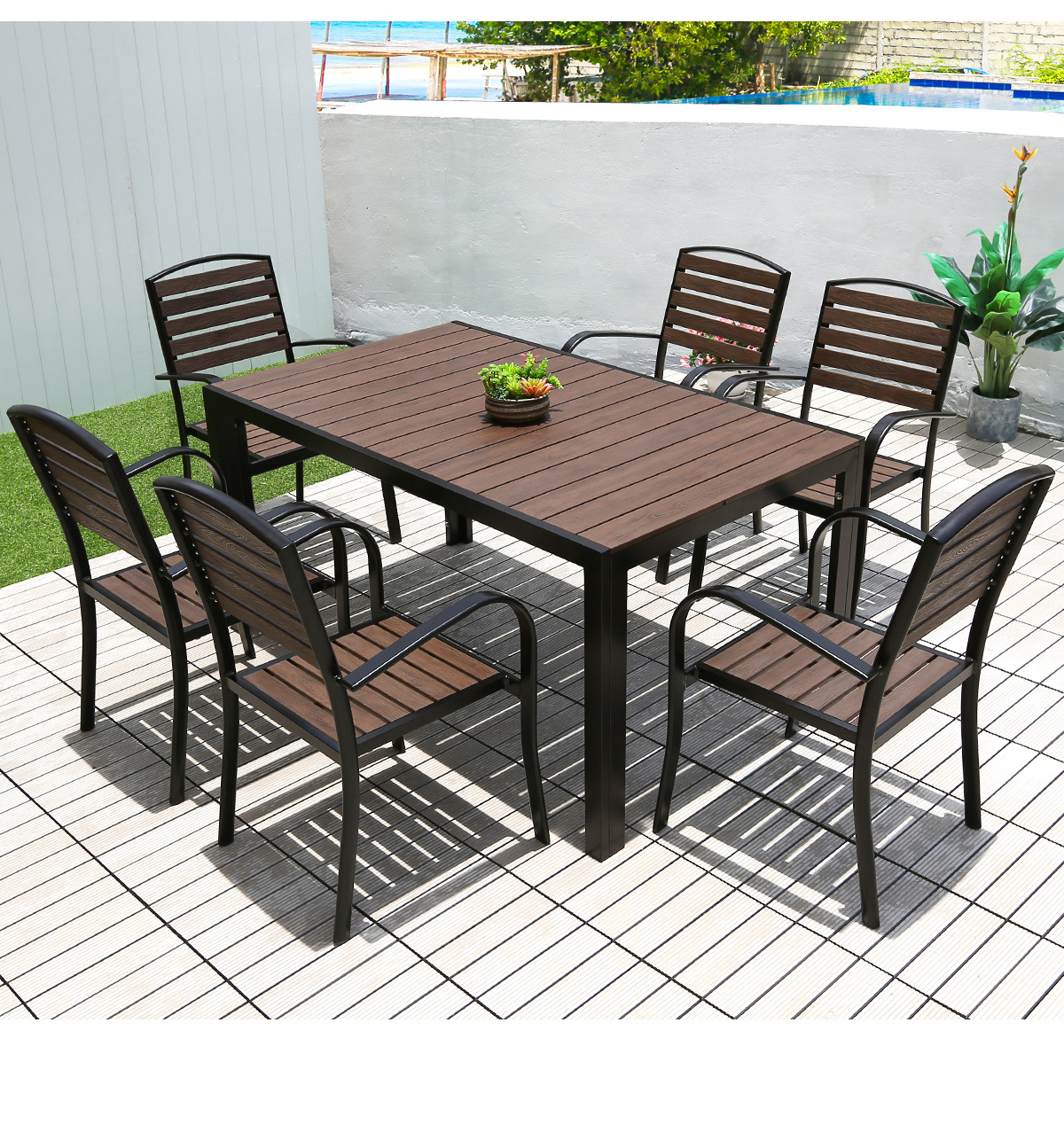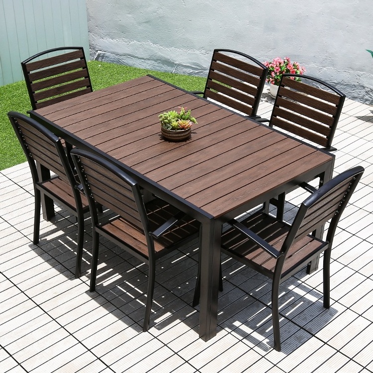 Low MOQ Outdoor Restaurant Tables And Chairs Outdoor long desk Plastic Wood Dining Table Set Garden furniture