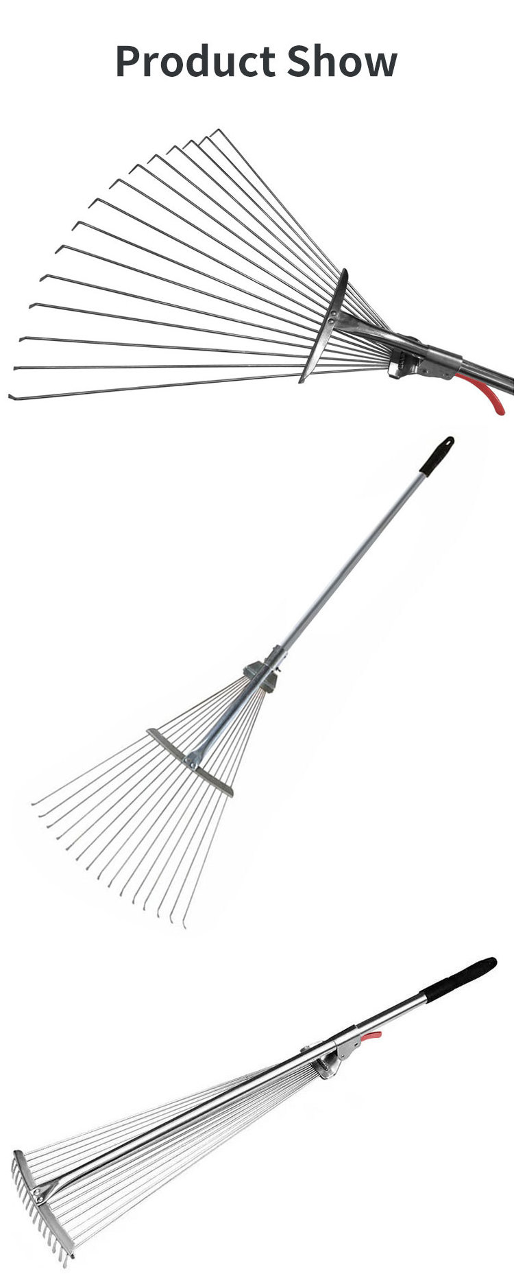 15 Teeth fan long handle telescopic rake leaf grabber metal landscape garden leaf rake adjustable