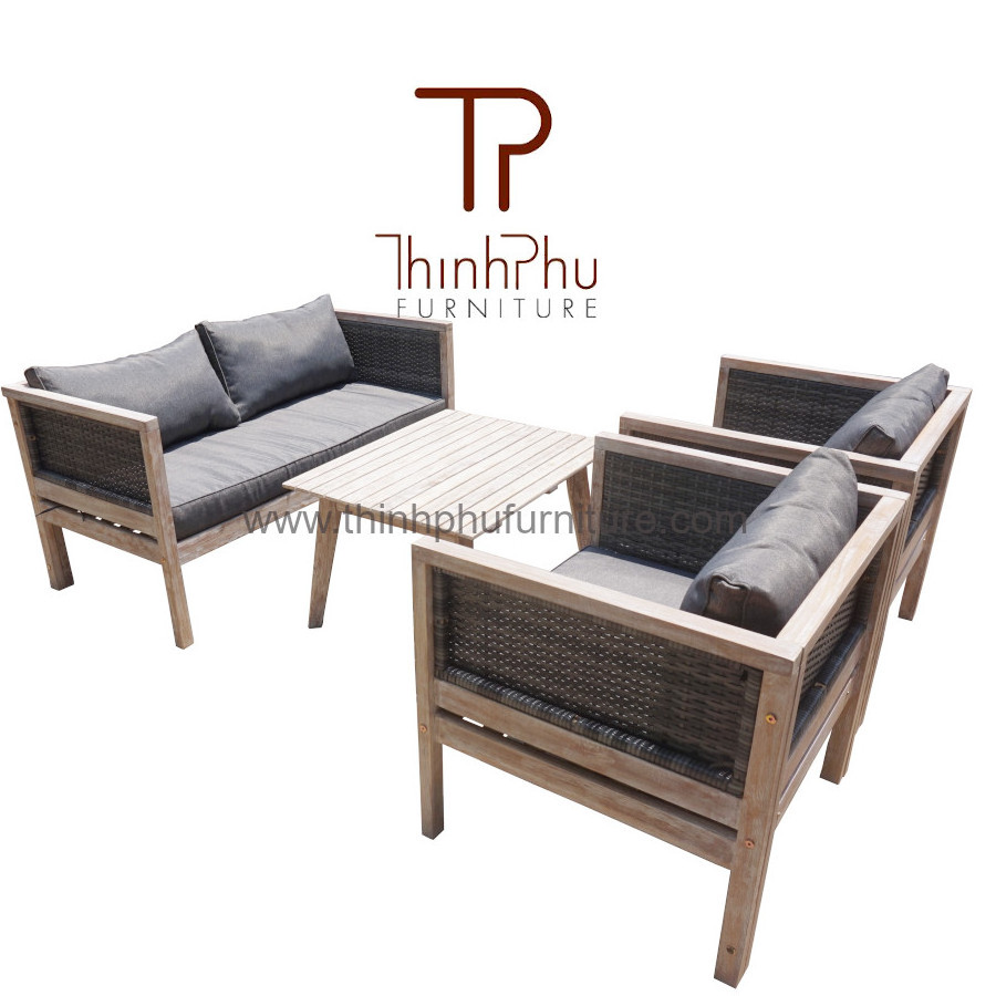 Sofa set mixing wood and rattan / wicker