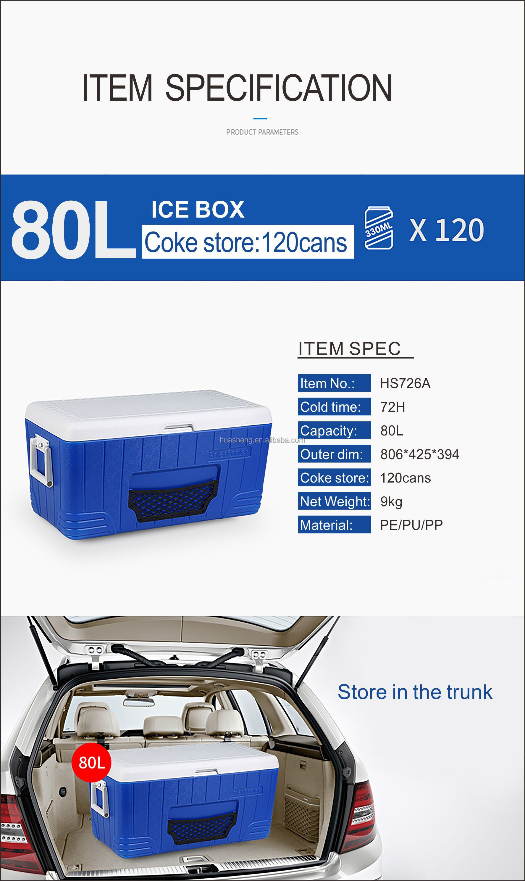 Plastic Ice Box 80 L Factory Directly Sales PU Insulated Ice Cooling Ice Chest Cooler Box for Outdoor Camping