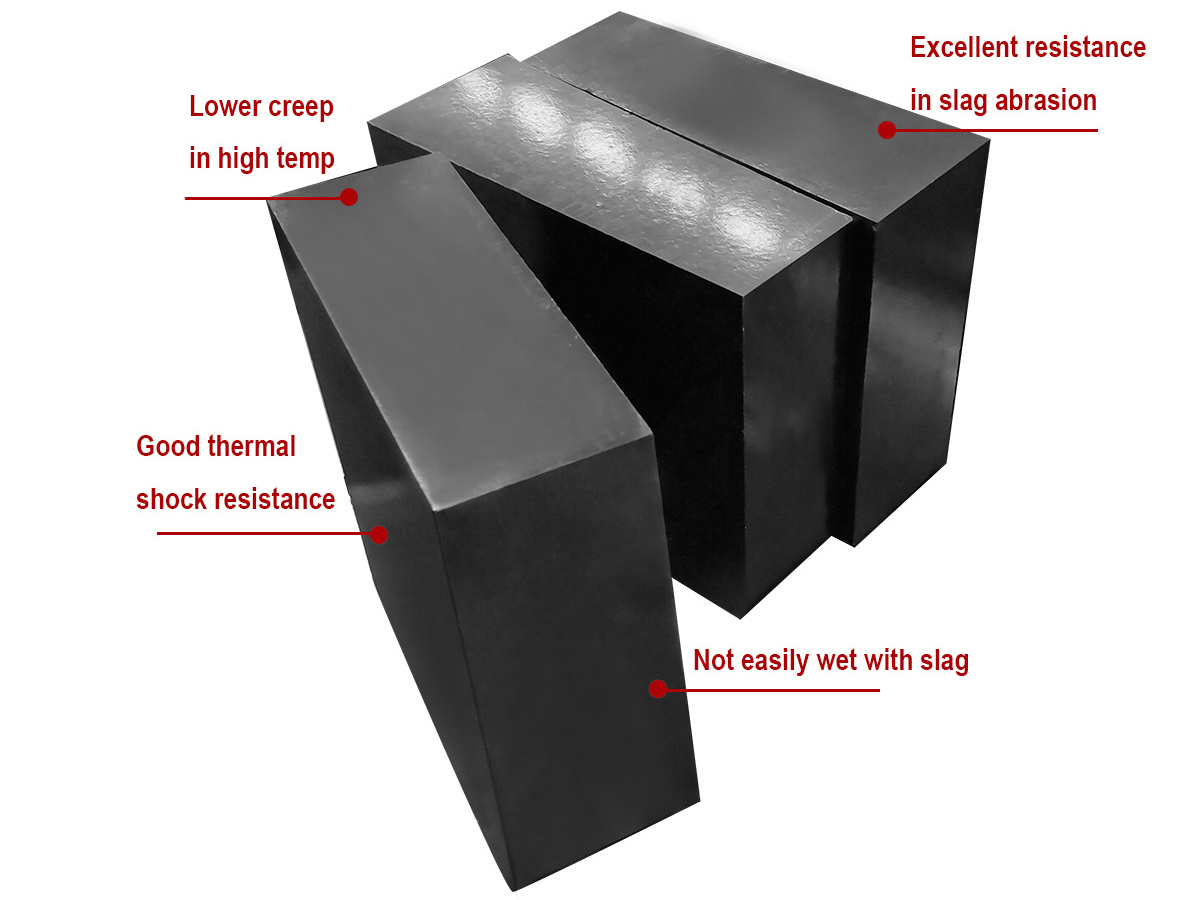 Magnesia Carbon brick is resin-bonded brick made from dead-burned or fused magnesia and graphite.Magnesia Carbon brick has good performance in thermal resistance, corrosion resistance and spalling resistance. Widely used in converters, EAFs, ladles and refining furnaces.