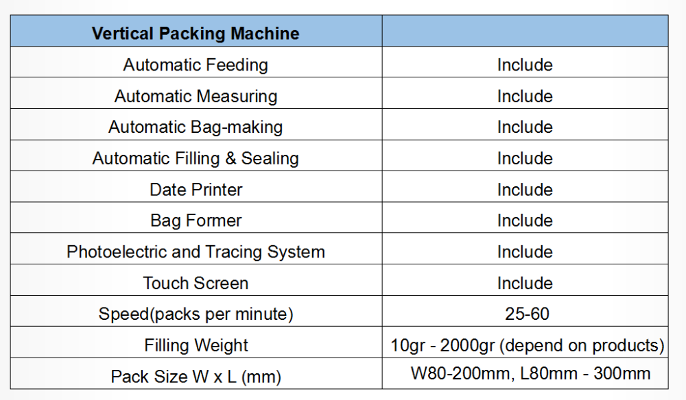SPECIFICATIONS FOR PACKAGING MACHINE HTL-420C