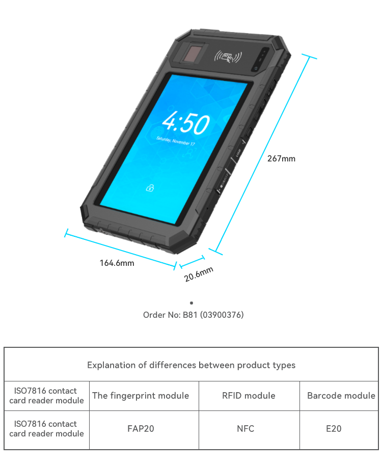A: Yes, you can choose multiple fuction into onedevice, Different functions depending on the product model,optional functions:RFID (LF/HF/UHF)1 Fingerprint/ Bar code scanner.