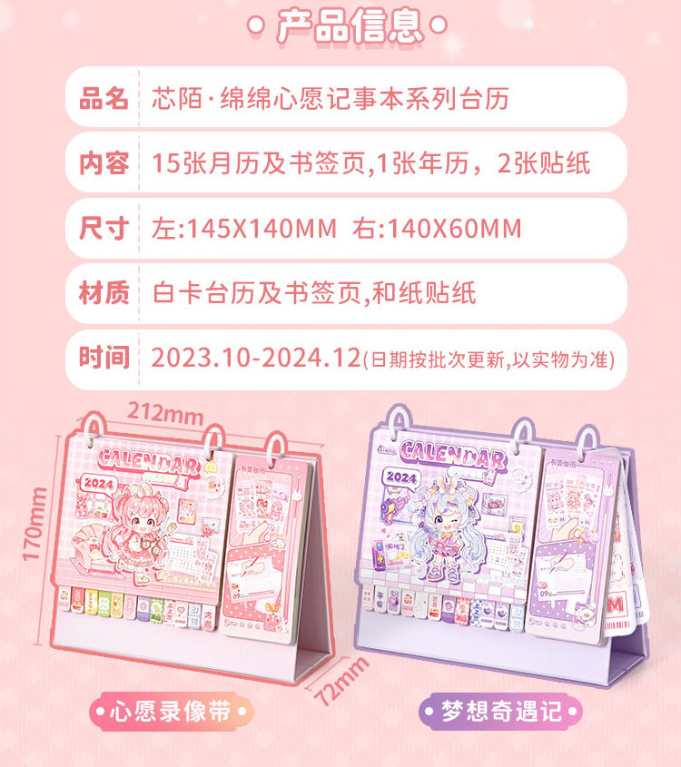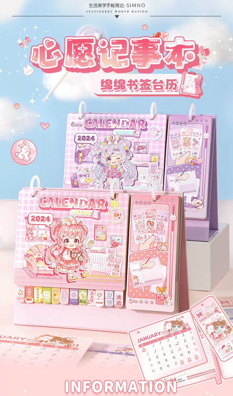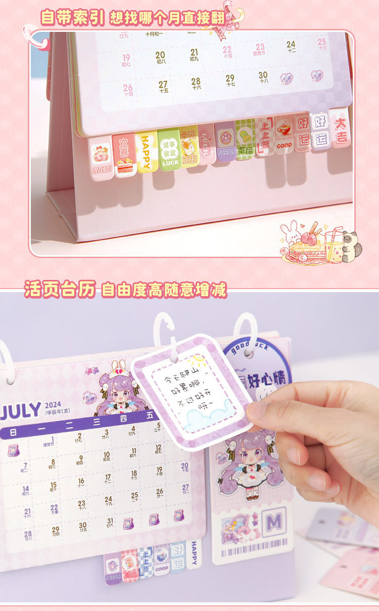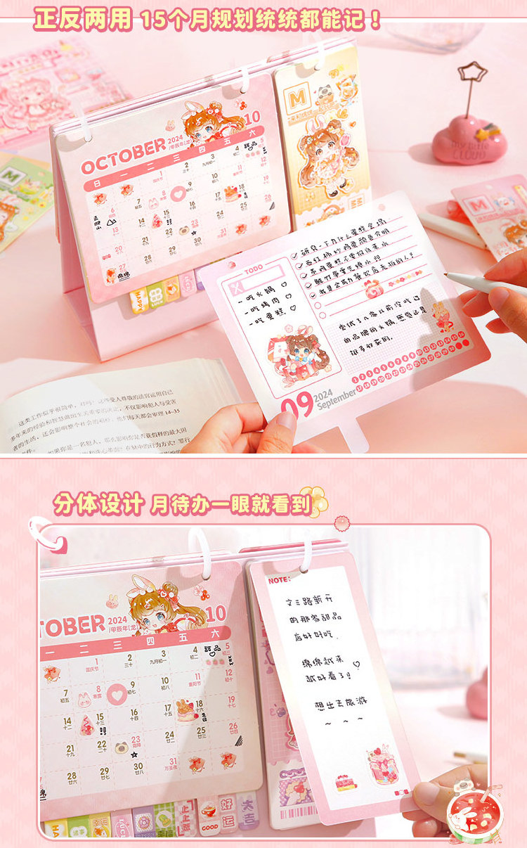 2024 Month Desktop Calendar Cartoon Design Standing Flip Calendar