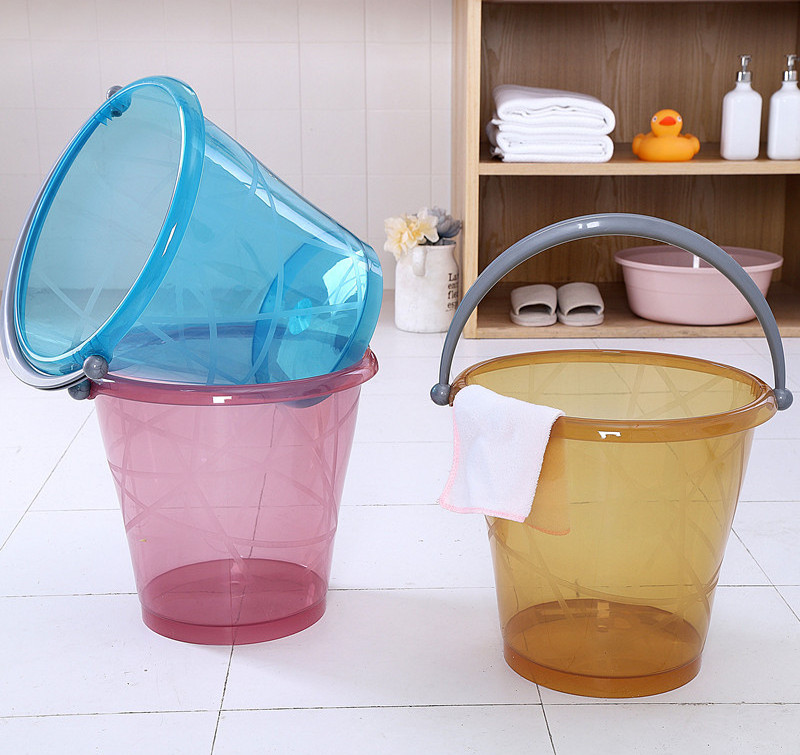 Household transparent plastic bath round pail bucket with handle