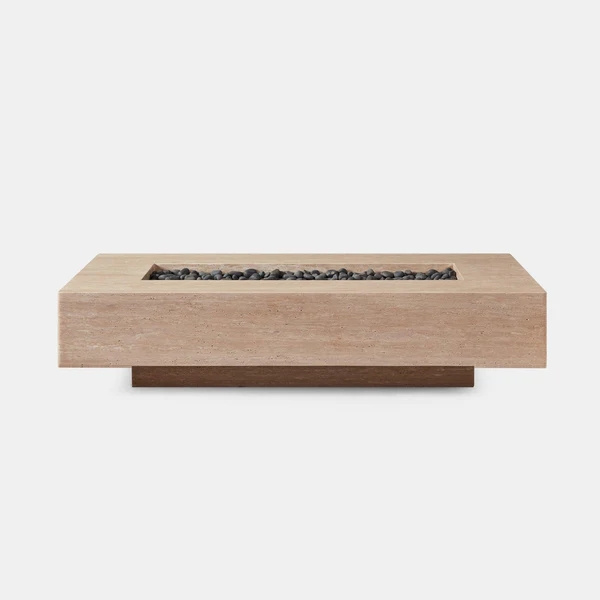 Modern design teak wood furniture rectangle gas burner wood fire pit