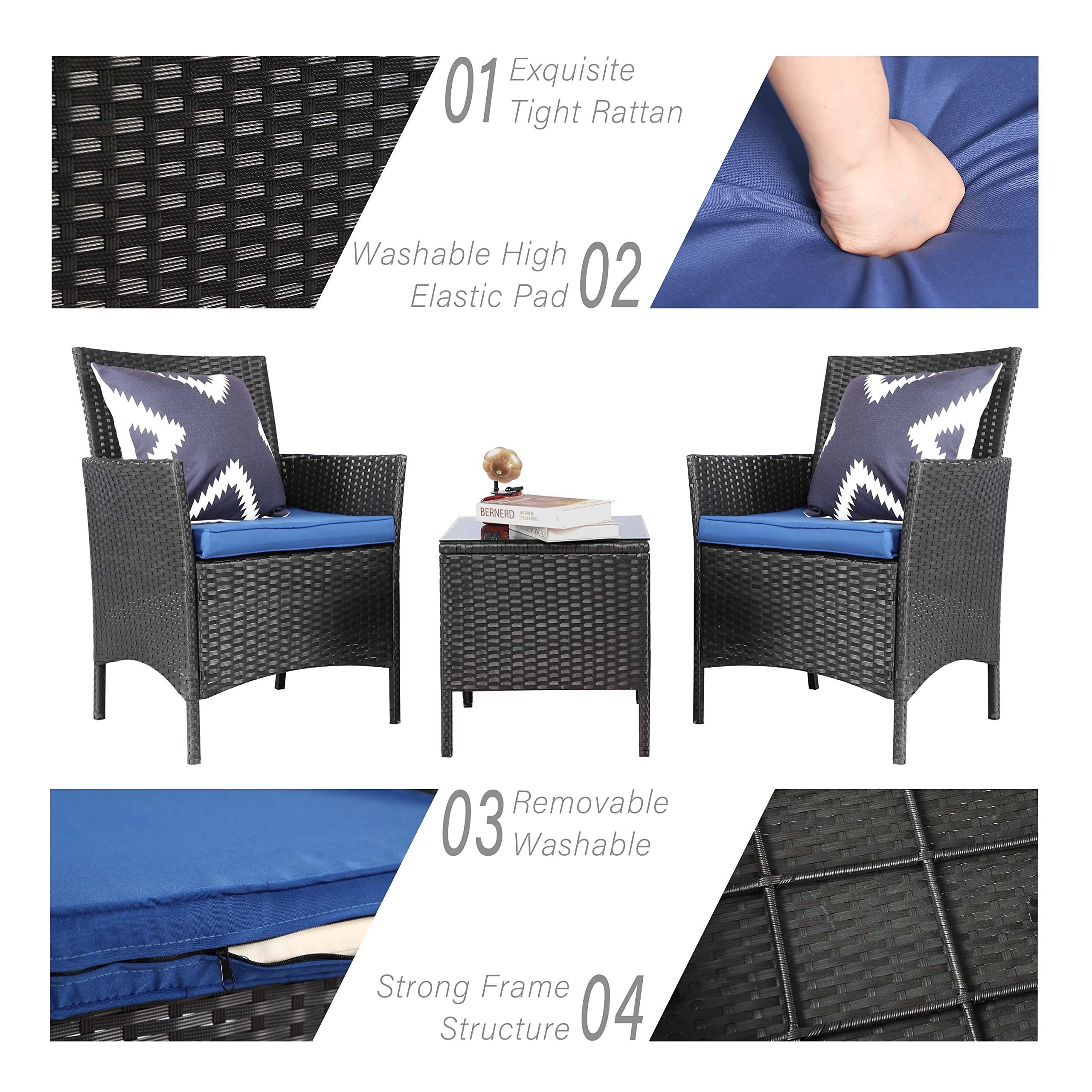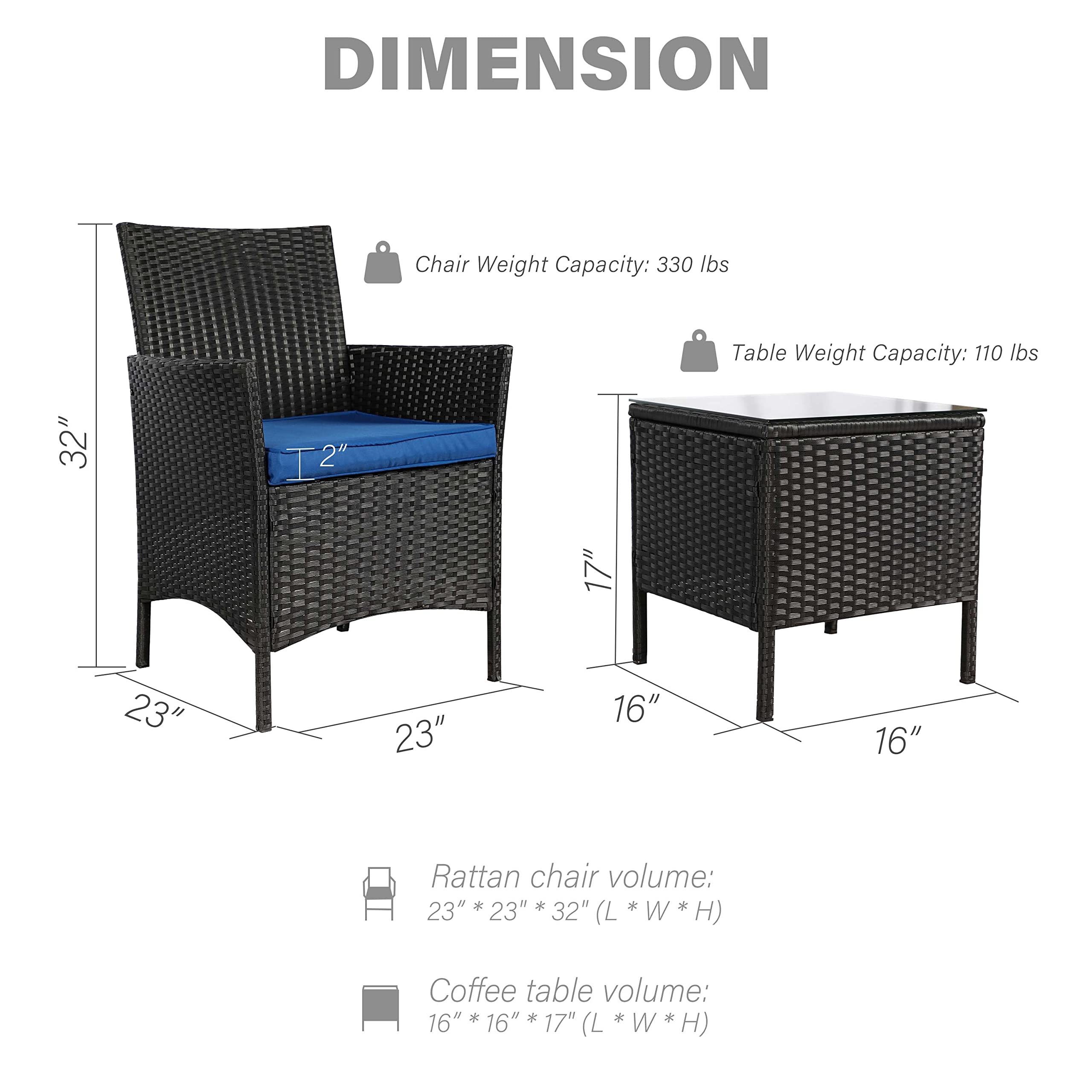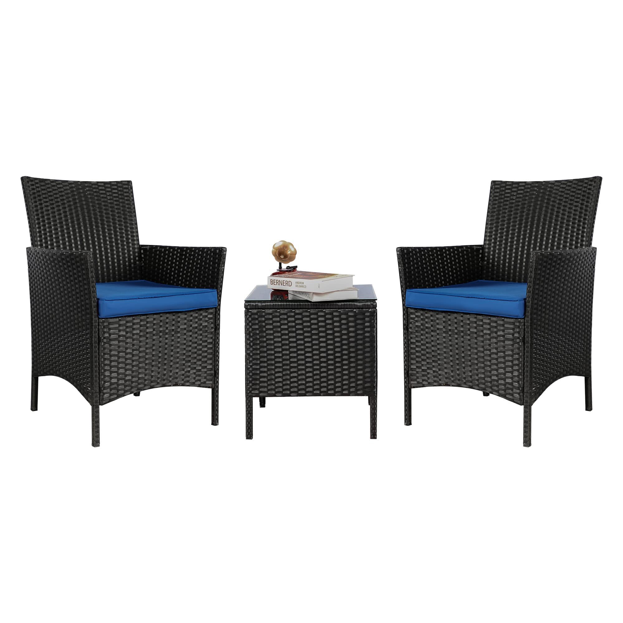 Custom Modern Outdoor Garden Luxury 3 Pieces Rattan Patio Set With Coffee Table and Two Chair