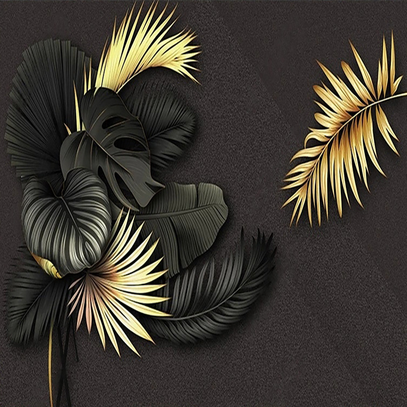 KOMNNI Custom 3D Wall Mural Nordic black Gold Tropical Plants Mural Geometry Wallpaper Living Room Background Wall Mural