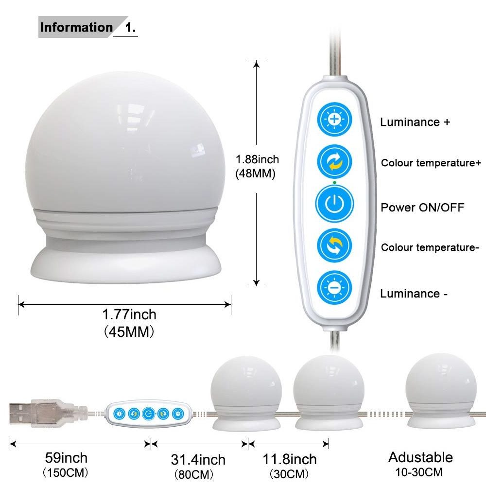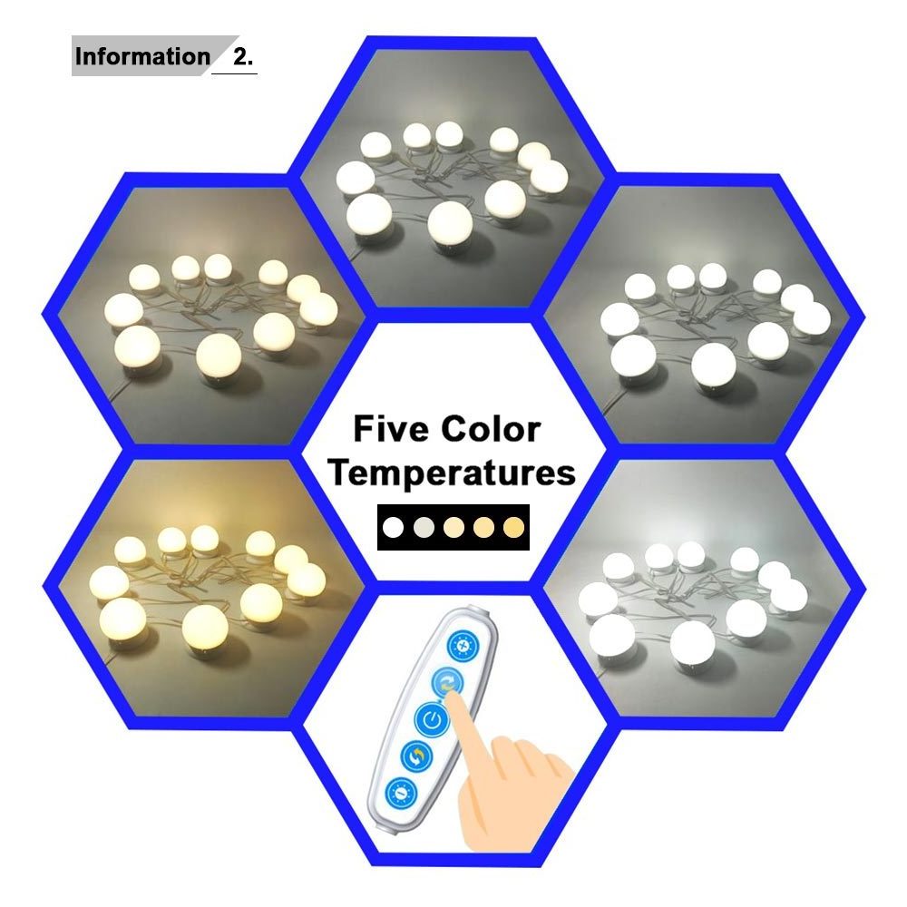 LED Mirror Lamps, USB Powered Hollywood Light Bathroom Vanity Mirror Lights Kit With Dimmable Light Bulbs