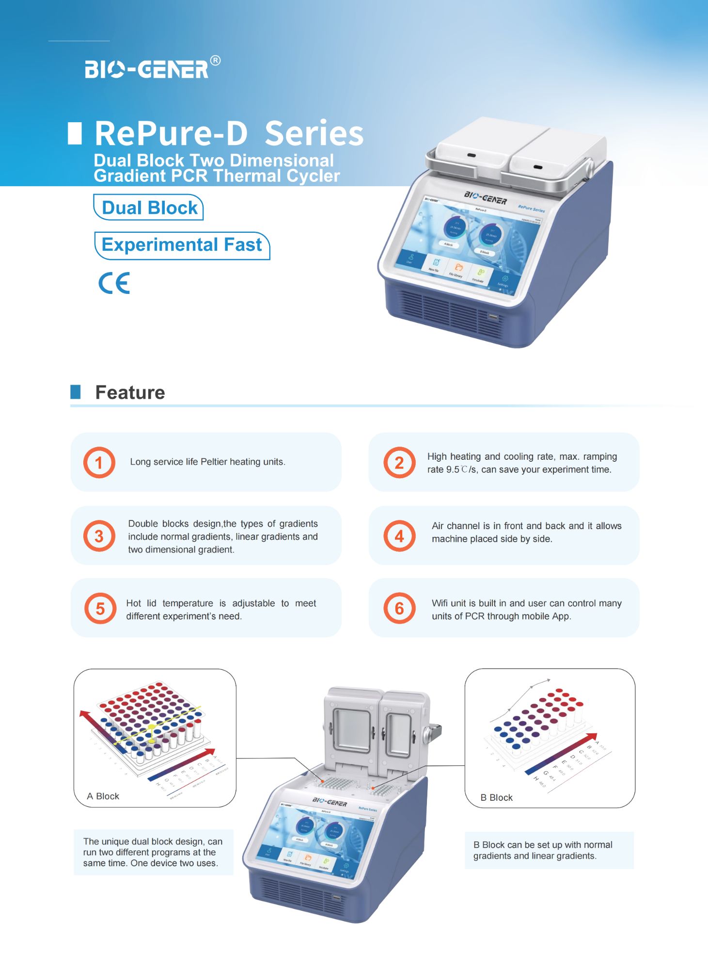 | Sample Capacity | 64×0.2ml (A Block) + 32×0.2ml (B Block) | |||