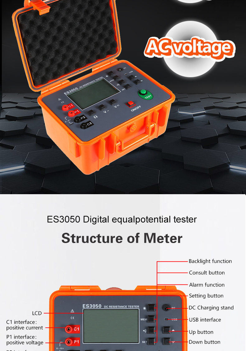 Equipotential bonding resistance test between metal components, low-value resistance test, resistance test of connecting