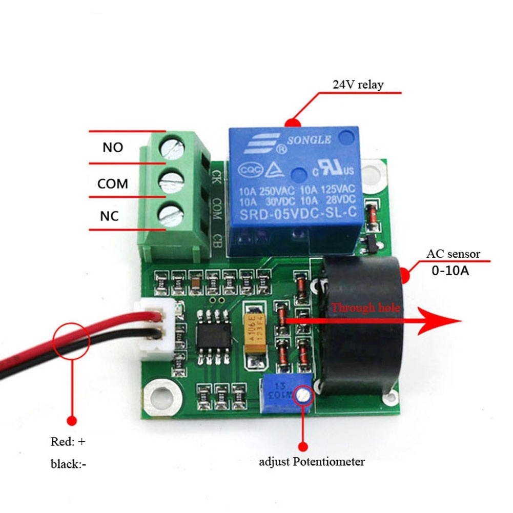 Taidacent 24V 0-10A Current Detection Sensor Switch Output AC Current Signal Sensor for Overcurrent Short-Circuit Protection