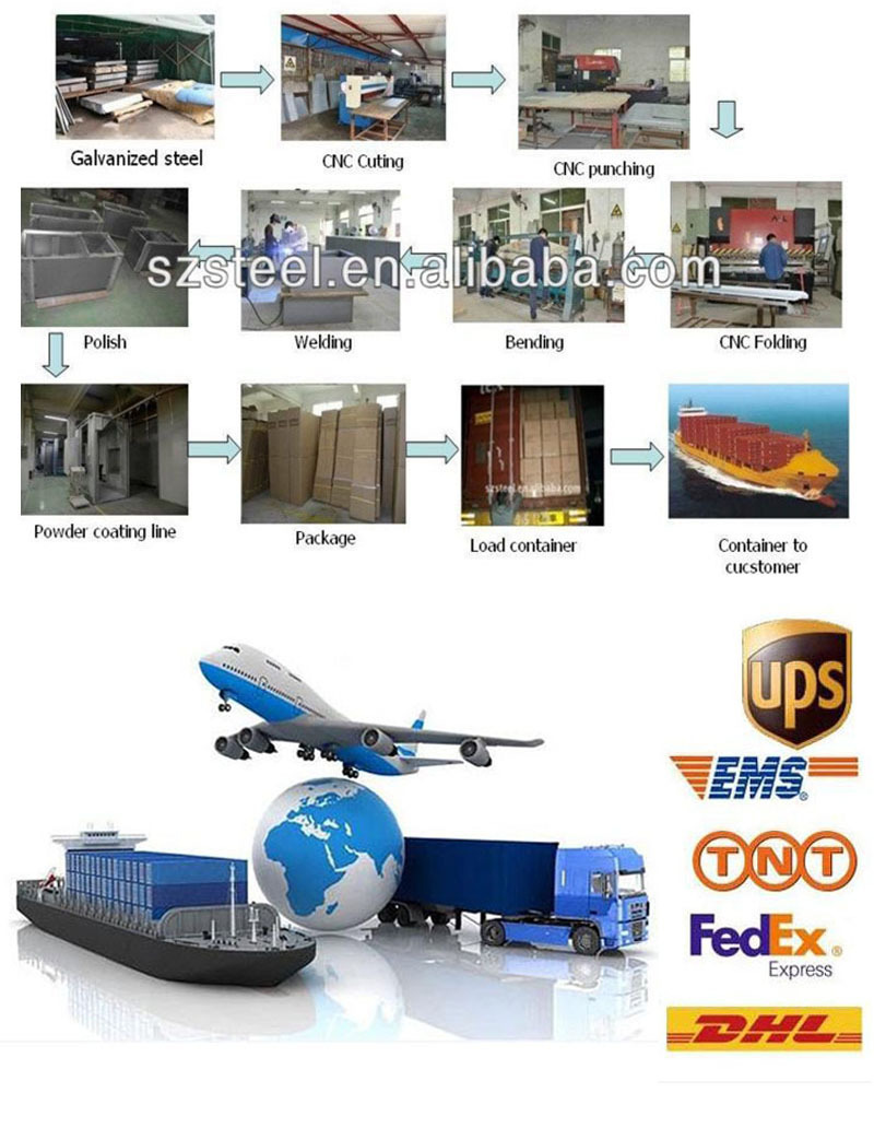 All of our products are used galvanized steel as material, thickness is from 0.7~2.5mm before powdercoated.