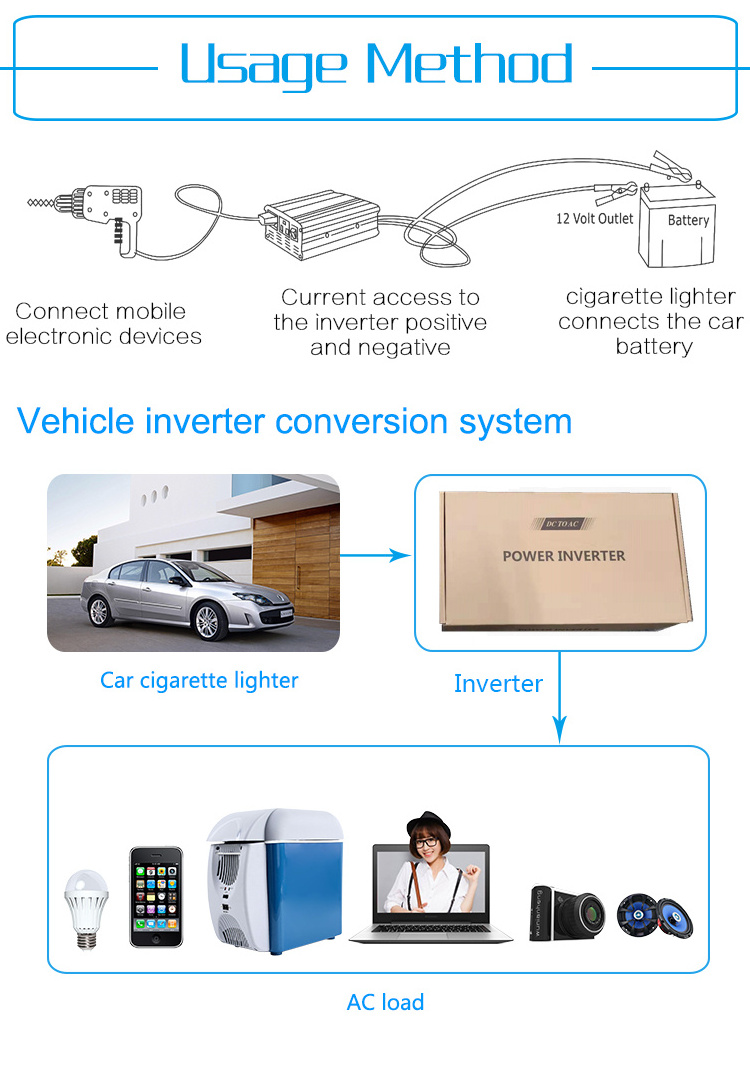 A: Take a battery with 12V/50AH as an example. Power equal current plus voltage then we know the power of battery is 600W. 12V*50A=600W. So we can choose a 600W power inverter according this theoretical value.