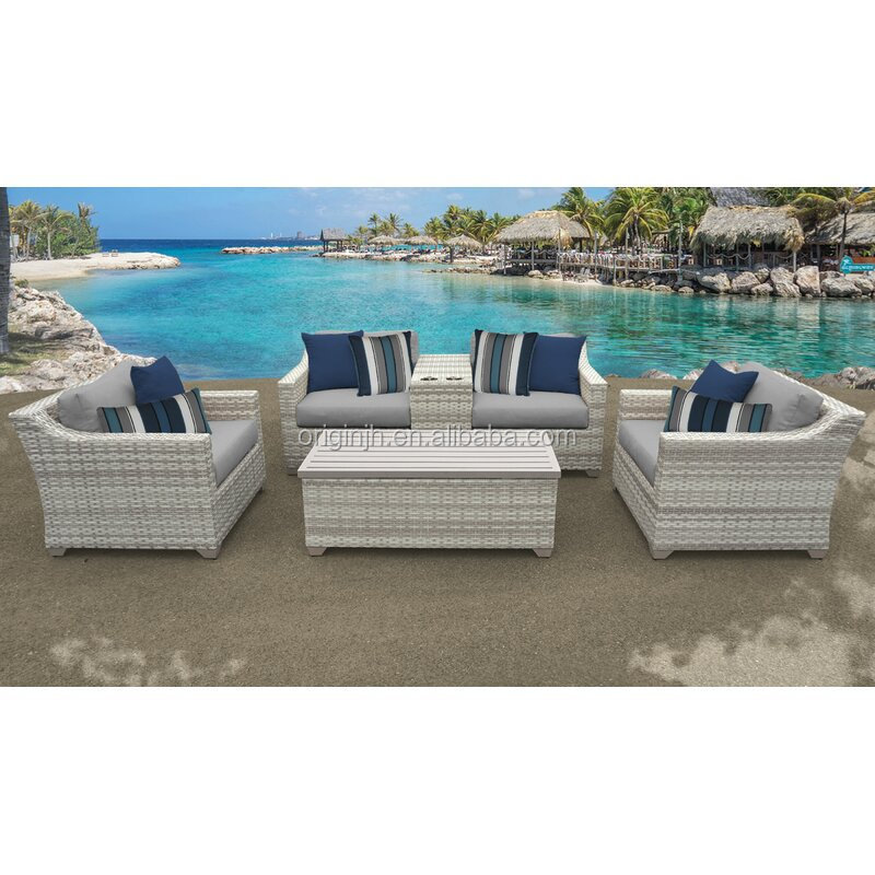 Gold supplier wholesales price outdoor aluminum frame with cushions garden furniture rattan sofa